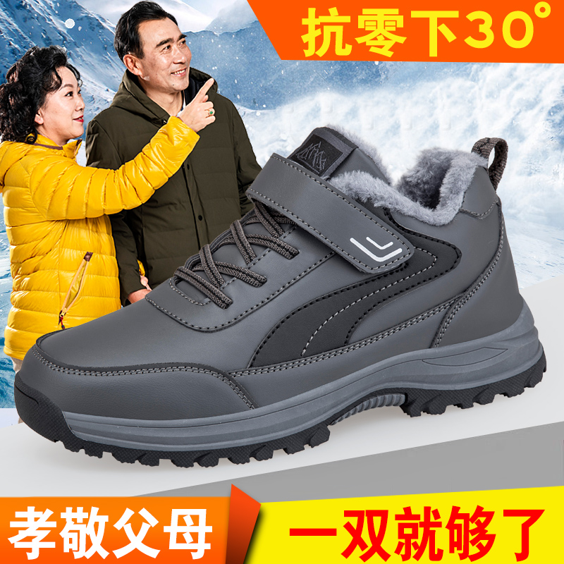 Зимние туфли, флисовая нескользящая обувь для ходьбы, спортивная обувь, лыжные сапоги, для среднего возраста, мягкая подошва