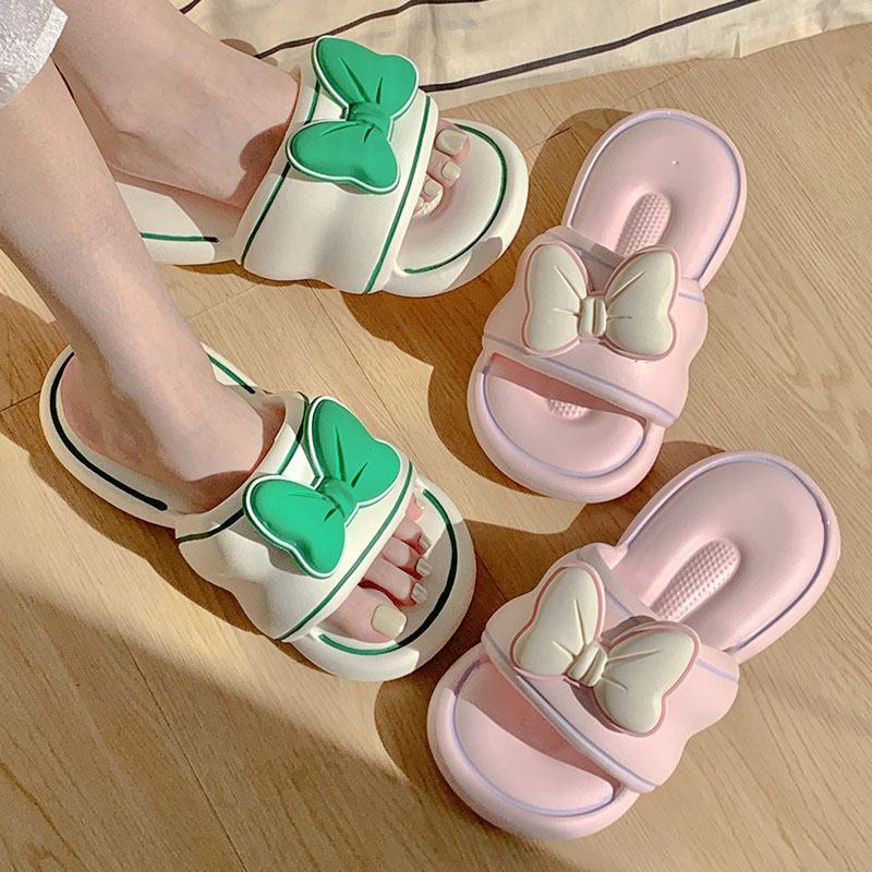 Слайдеры с бантиком, летние тапочки, милая модная нескользящая обувь на платформе, популярно в интернете