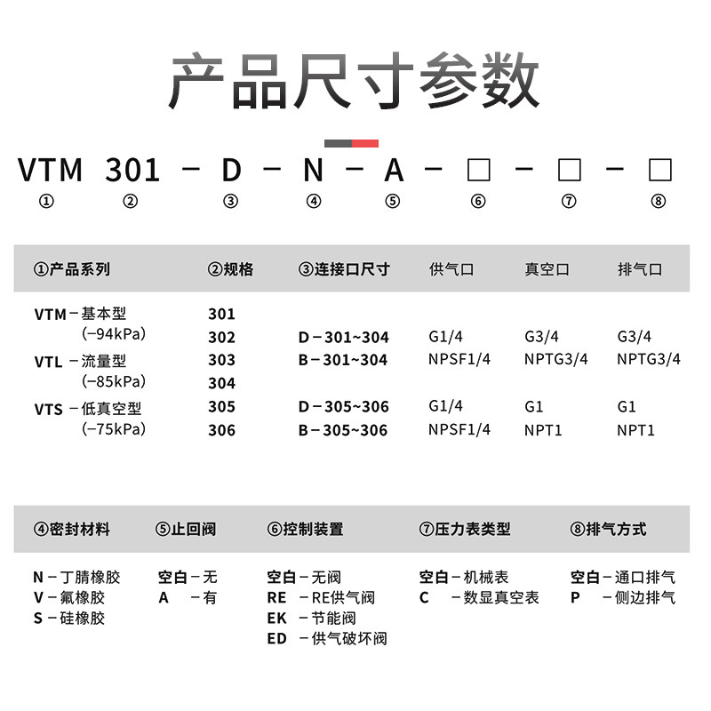 Настраиваемый многоэтапный вакуумный генератор VTM301/302/303/304/305/306-D-N-AEC Большой поток