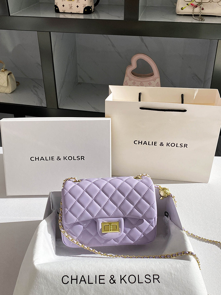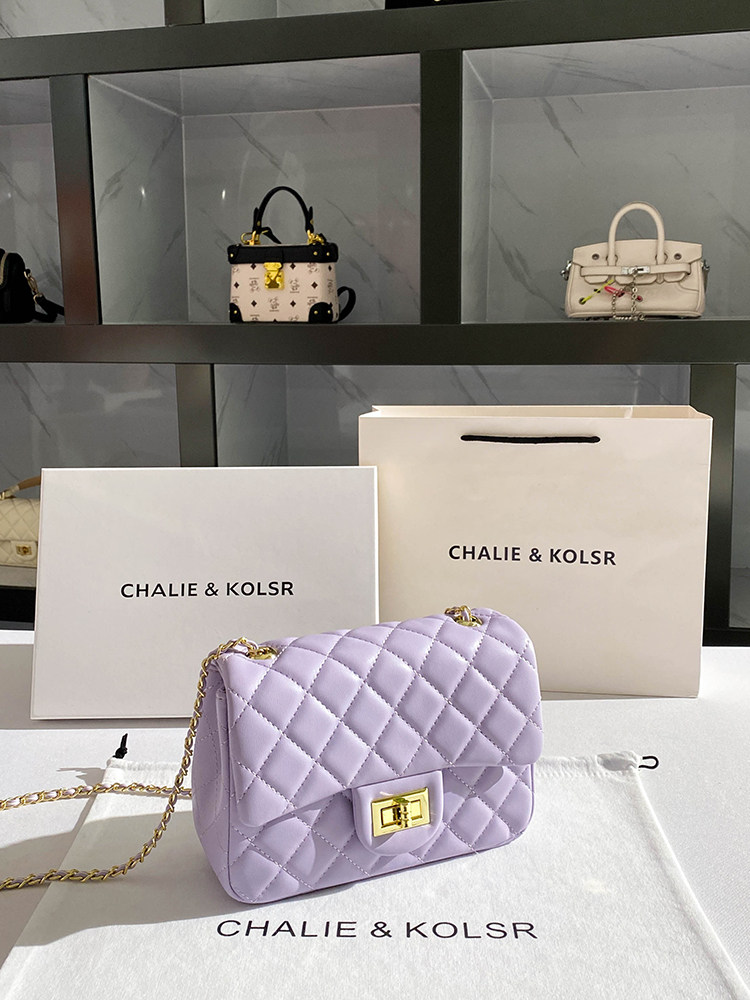 Chalie & Kolsr фиолетовая сумка из натуральной кожи с небольшим ароматом и бриллиантовой цепочкой, новинка 2025 года, маленькая квадратная сумка с наклонным корпусом
