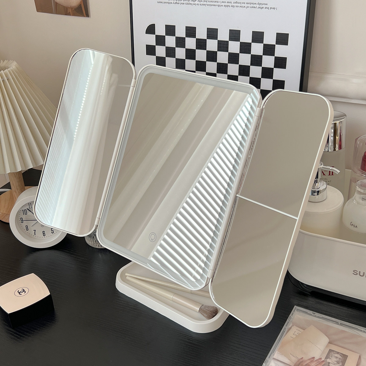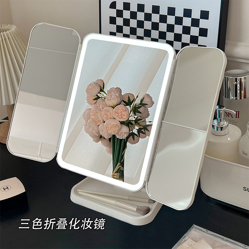 Настольная светодиодная коробка для хранения с подсветкой, складной заполняющий свет, зеркало, 2 в 1