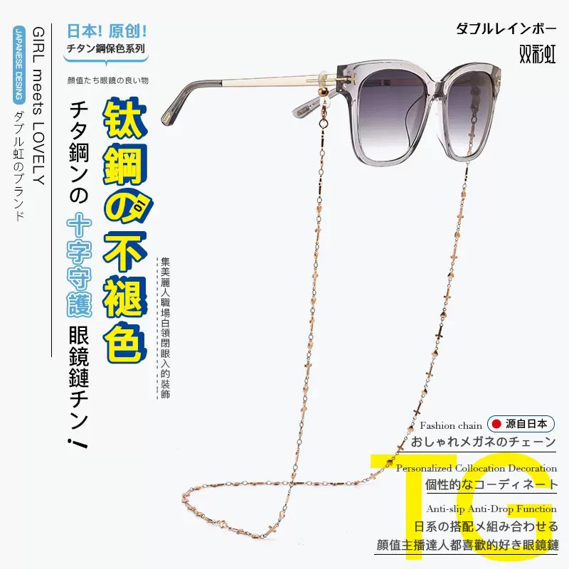 Ретро японская цепь из нержавеющей стали, модный ремешок на солнечной энергии, солнцезащитные очки, медицинская маска, шнурок-держатель, цепочка