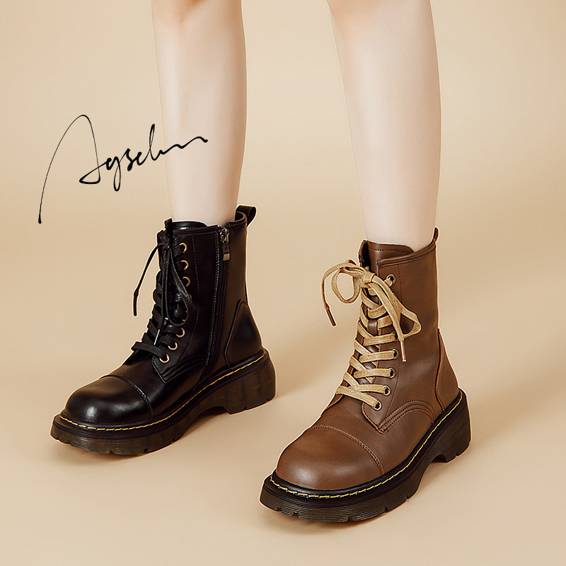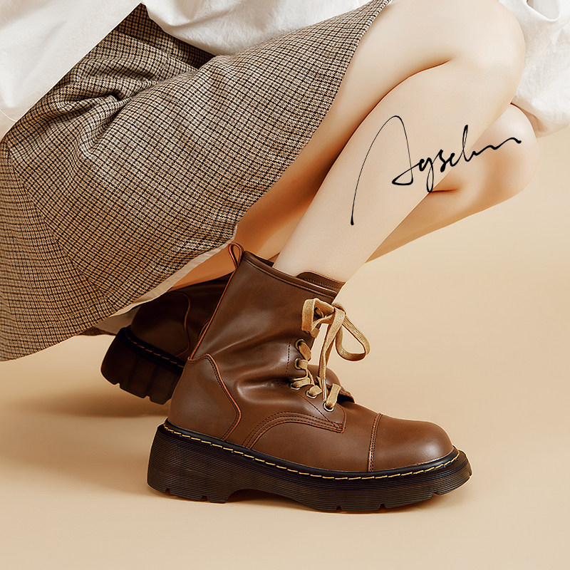 Martens, осенние коричневые короткие сапоги, коллекция 2023, подходят к юбкам, популярно в интернете