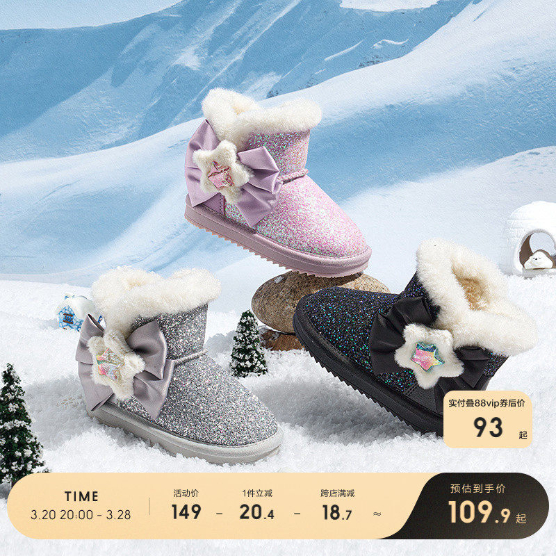 Детские туфли, короткие сапоги, флисовые зимние блестящие модные ботинки