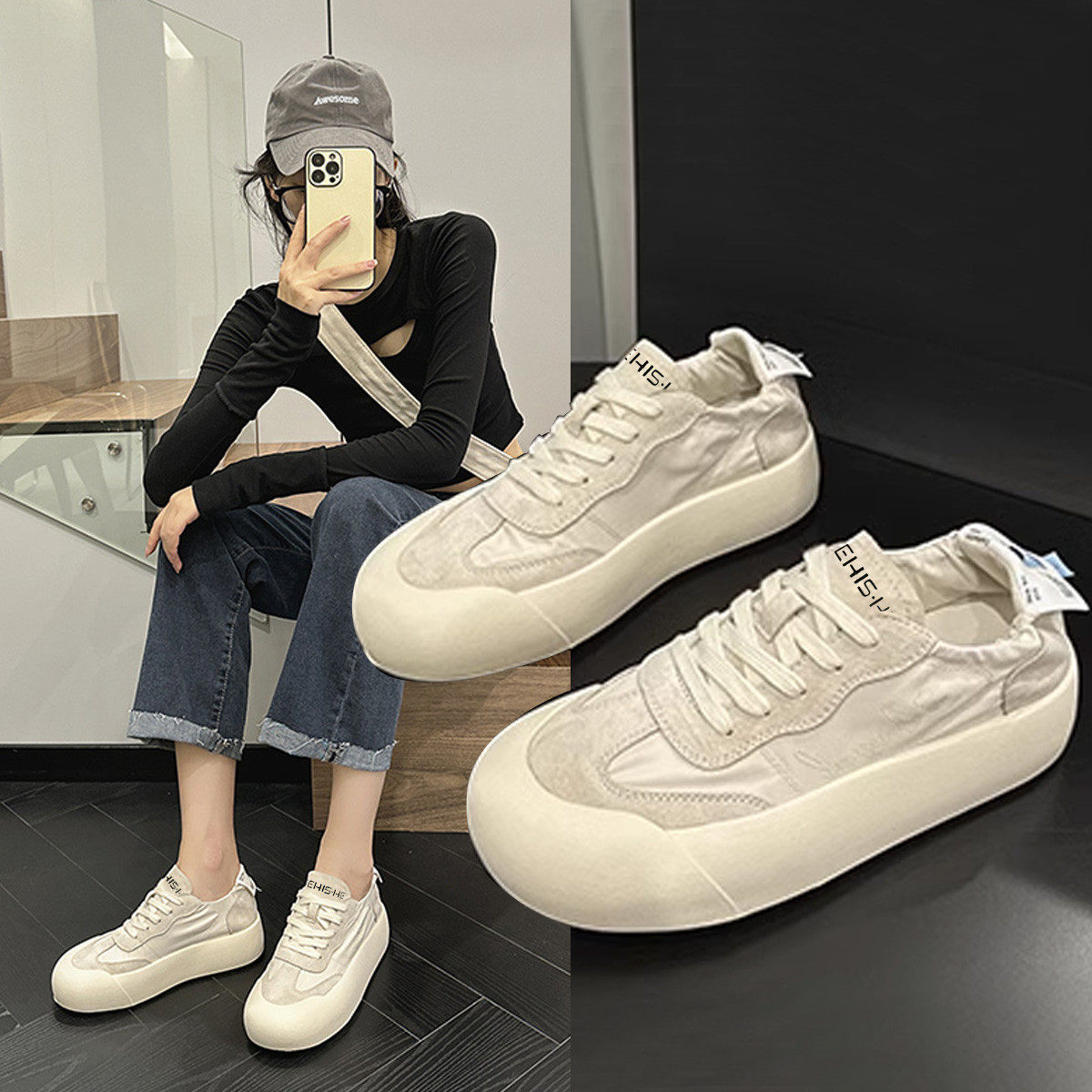 Дышащая весенняя белая обувь на платформе, кеды, кроссовки, мягкая подошва