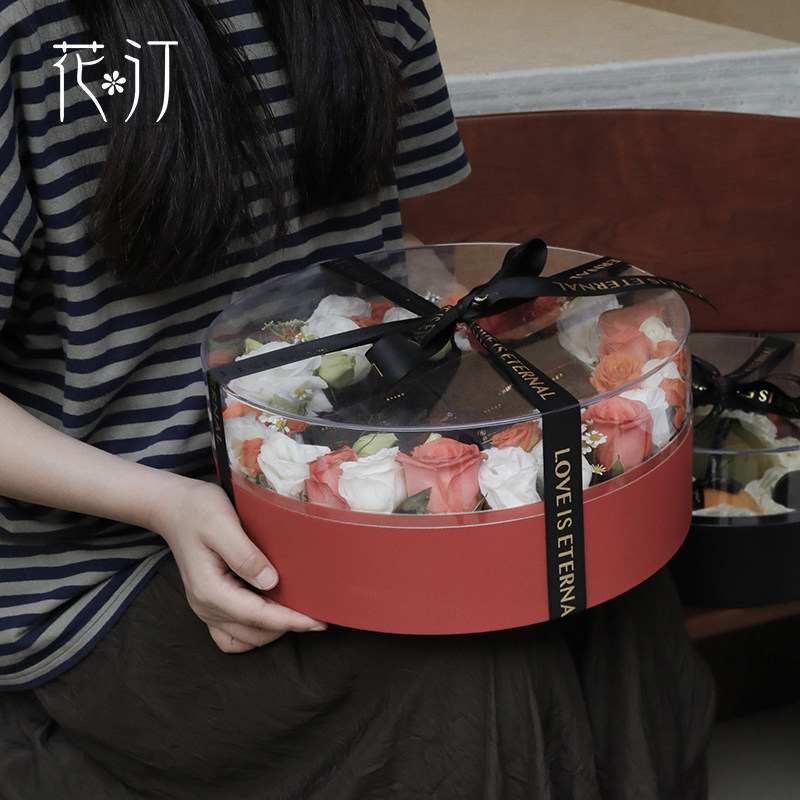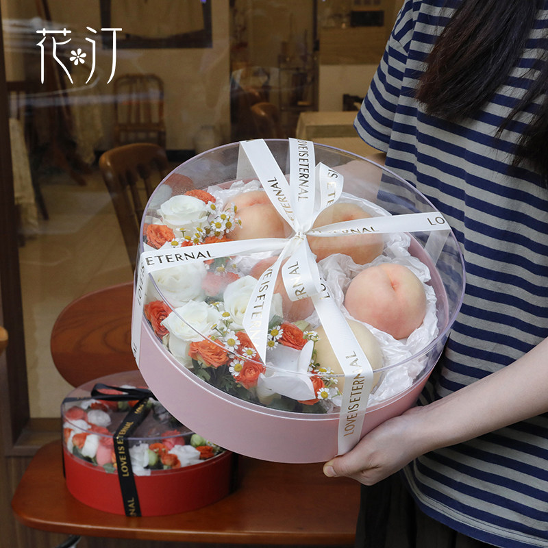 花汀 Новая высококачественная прозрачная круглая подарочная коробка с цветами и фруктами, рождественская мирная фруктовая акриловая оконная цветочная коробка, пустая коробка