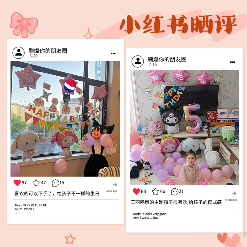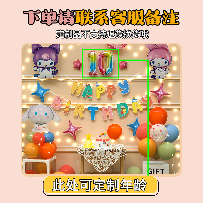 Тема Sanrio для девочек, атмосфера, с днем ​​рождения, украшение из воздушных шаров, детская вечеринка, расширенная планировка сцены, ритуальный смысл