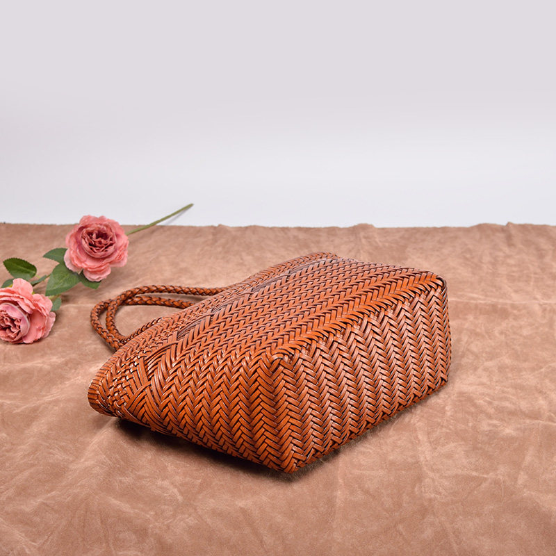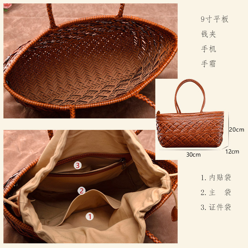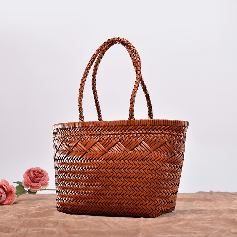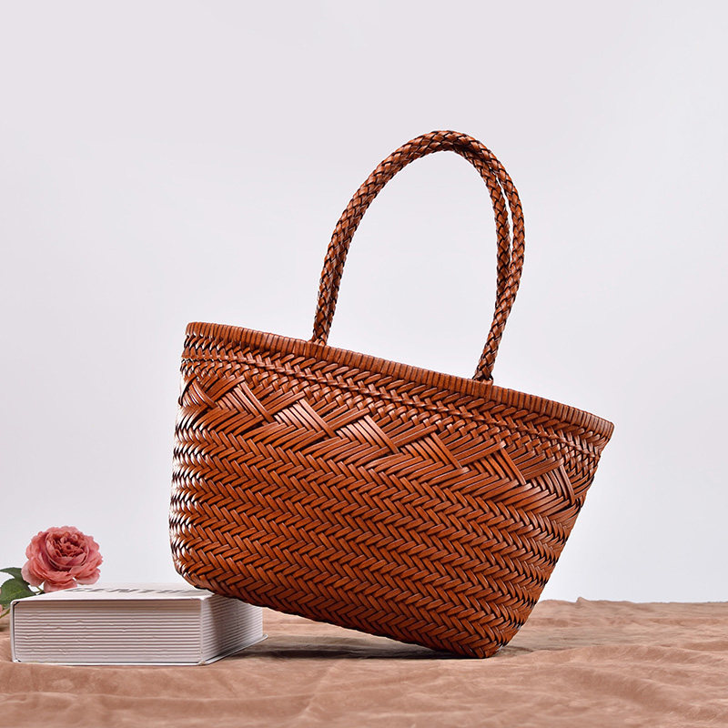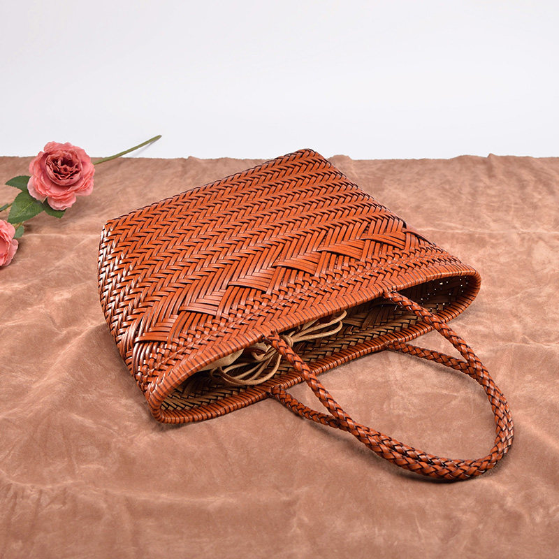 Кожаная плетеная пляжная летняя сумка, корзина, из натуральной кожи, французский стиль