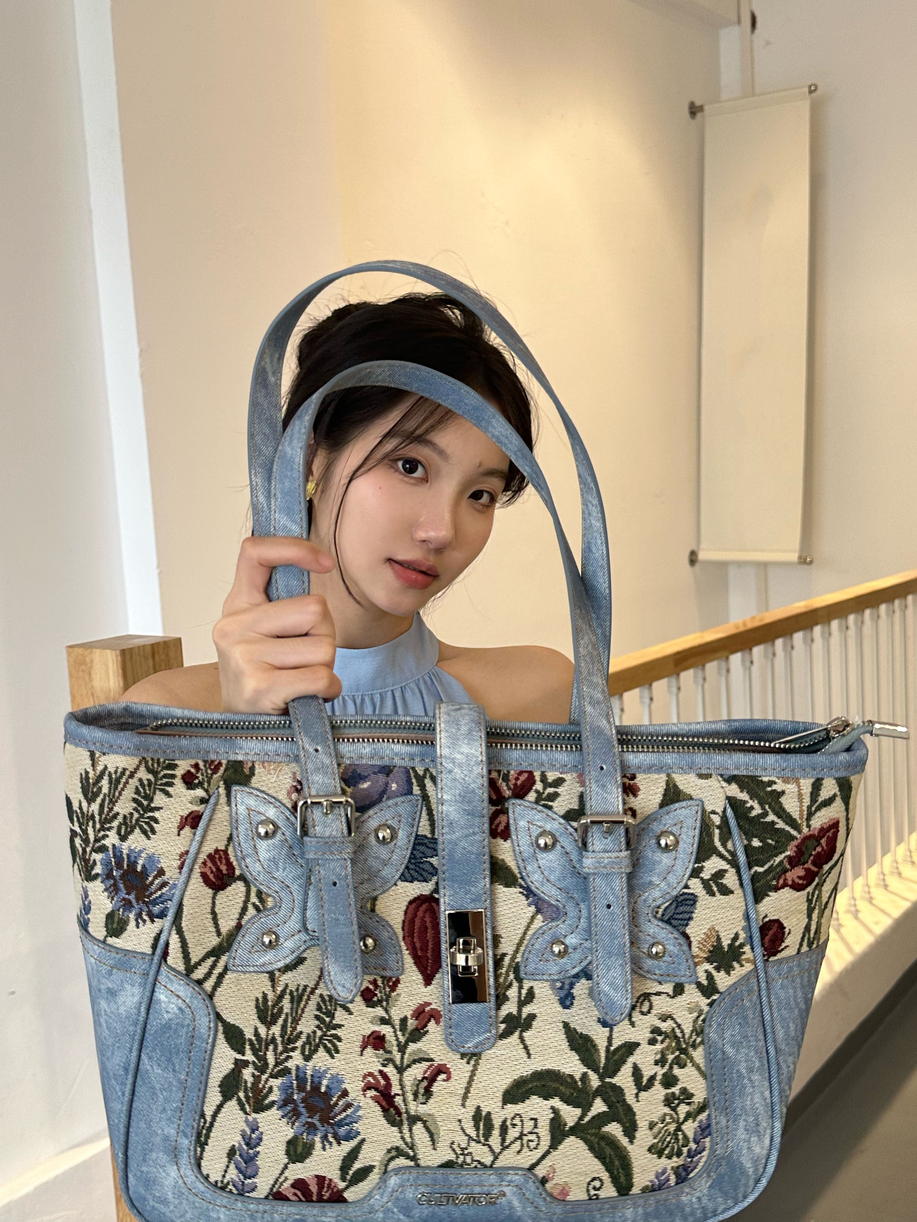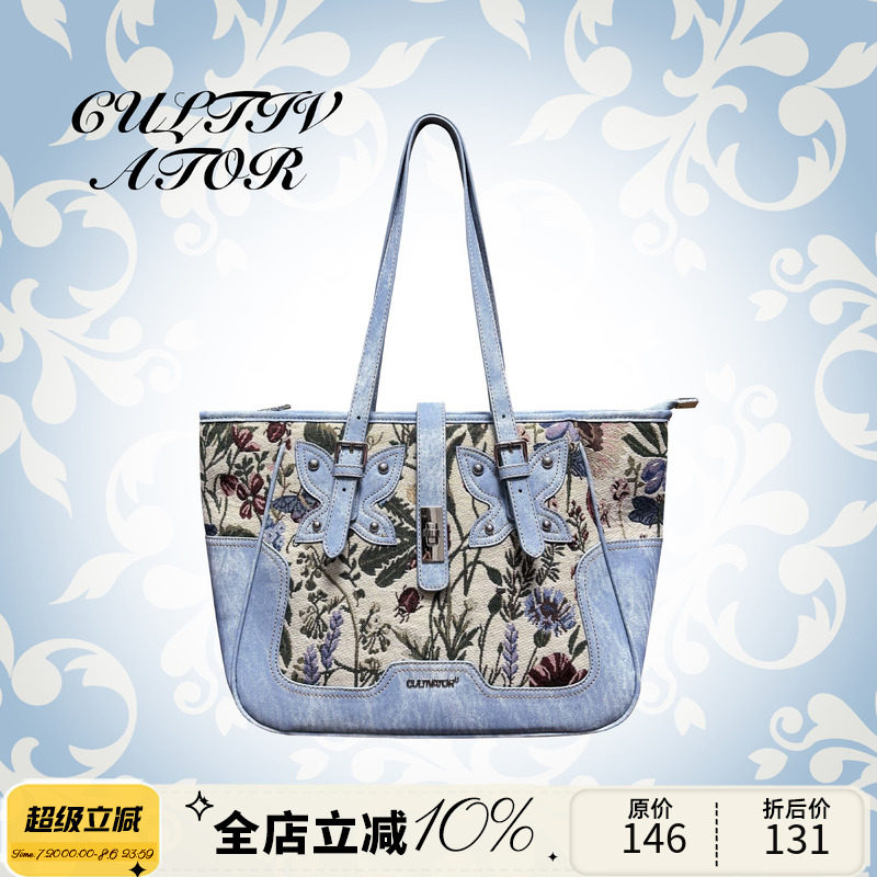 Культиватор, оригинальная нишевая ретро-модная джинсовая сумка-тоут с бабочкой и цветами, пригородная портативная сумка через плечо
