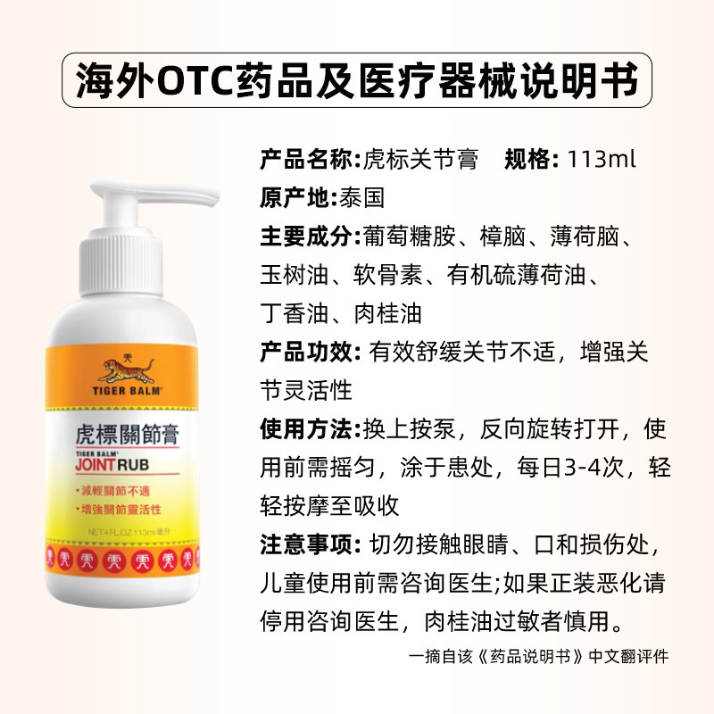 Сингапурский тигровый бальзам, крем для облегчения боли в суставах, содержит глюкозамин, хондроитин, боль в коленях и суставах, 113 мл