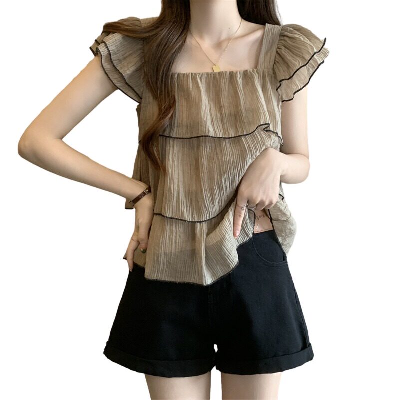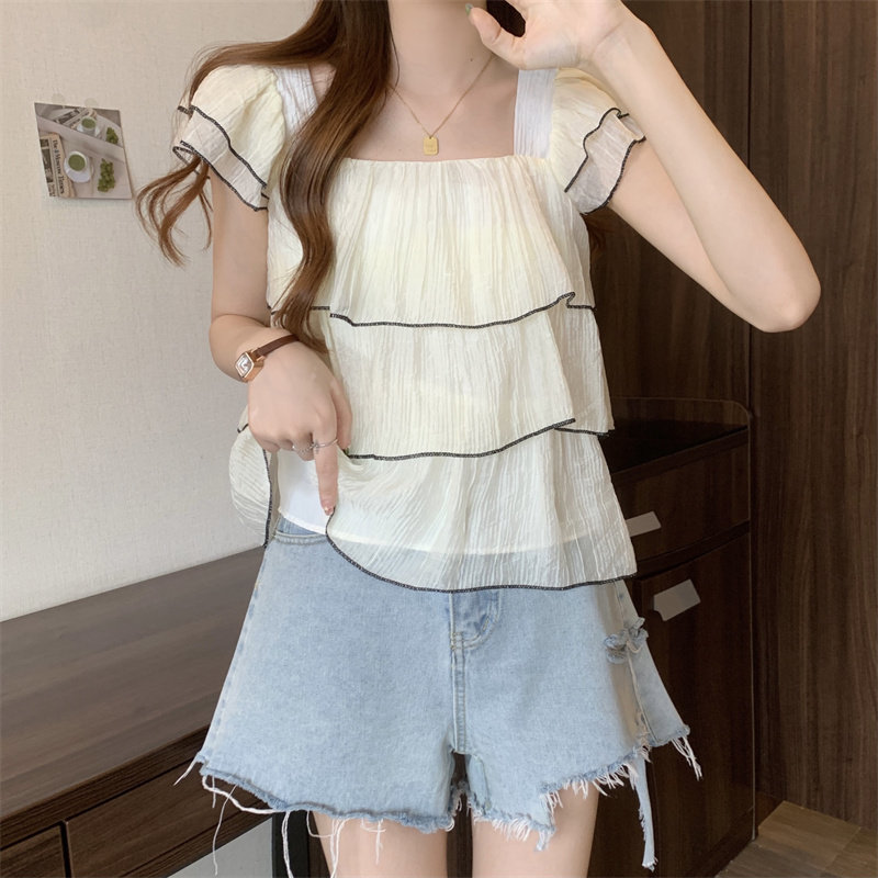 Летняя дизайнерская шифоновая летняя одежда для отдыха, большой размер, французский стиль, короткий рукав