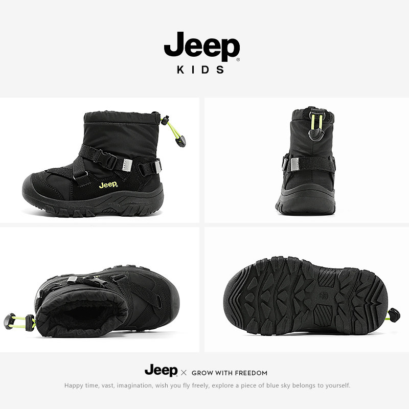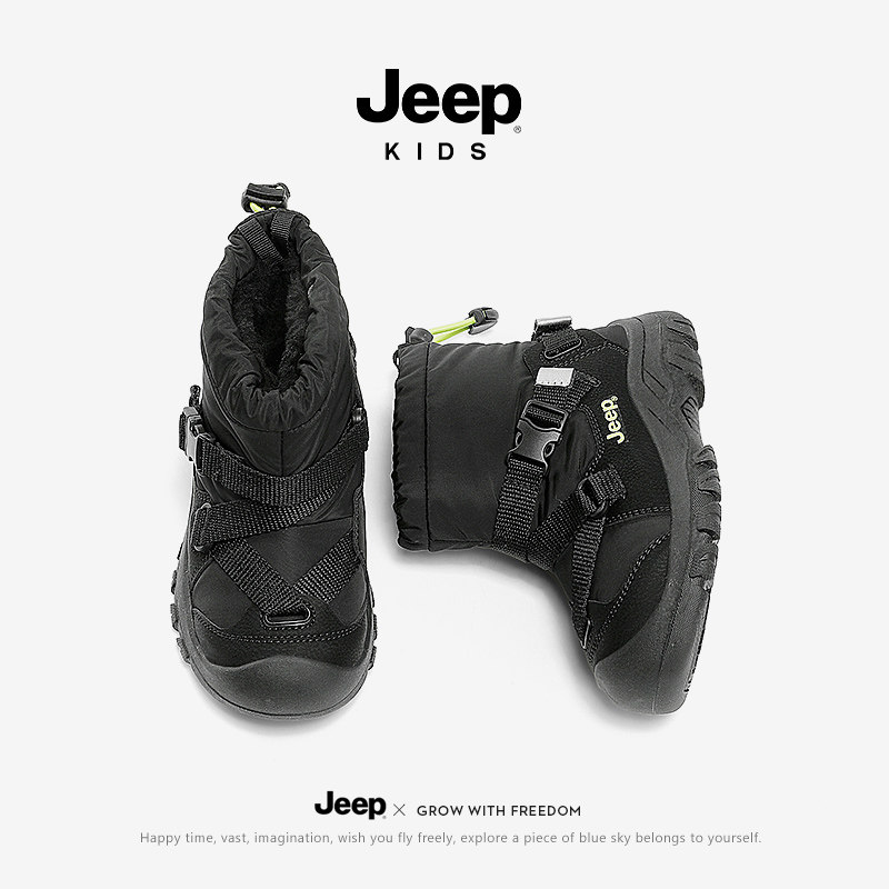 Зимние ботинки Jeep для мальчиков, зимние бархатные большие хлопковые туфли, новинка 2024 года, обувь из хлопковой шерсти с северо-восточным снегом, детская хлопковая обувь