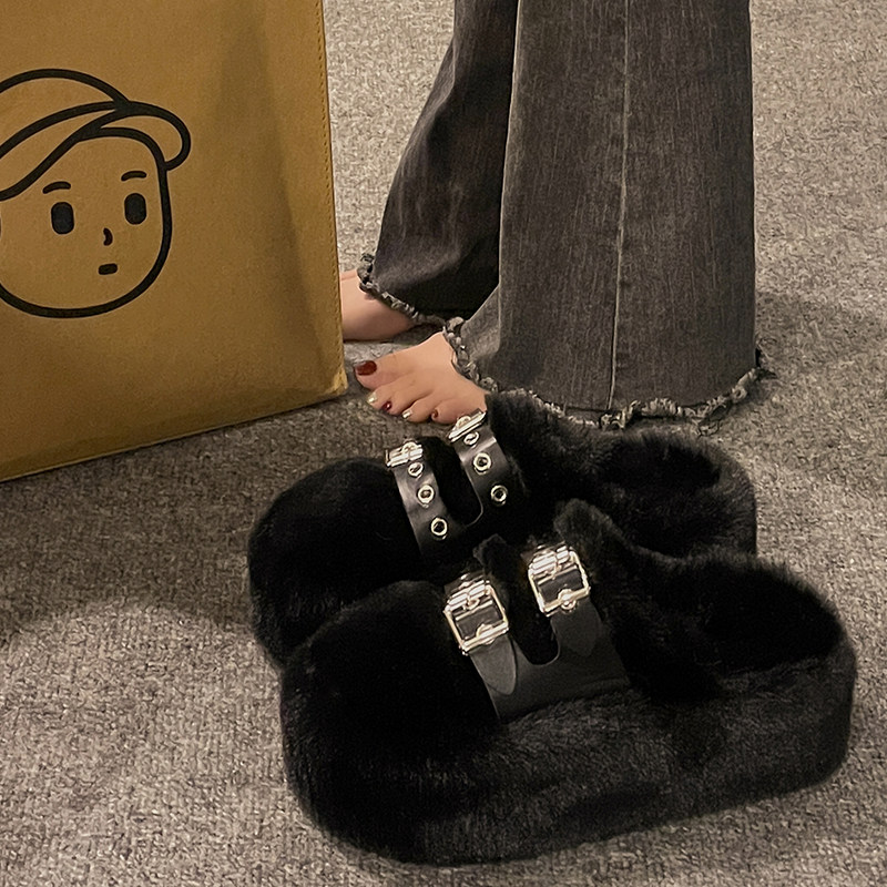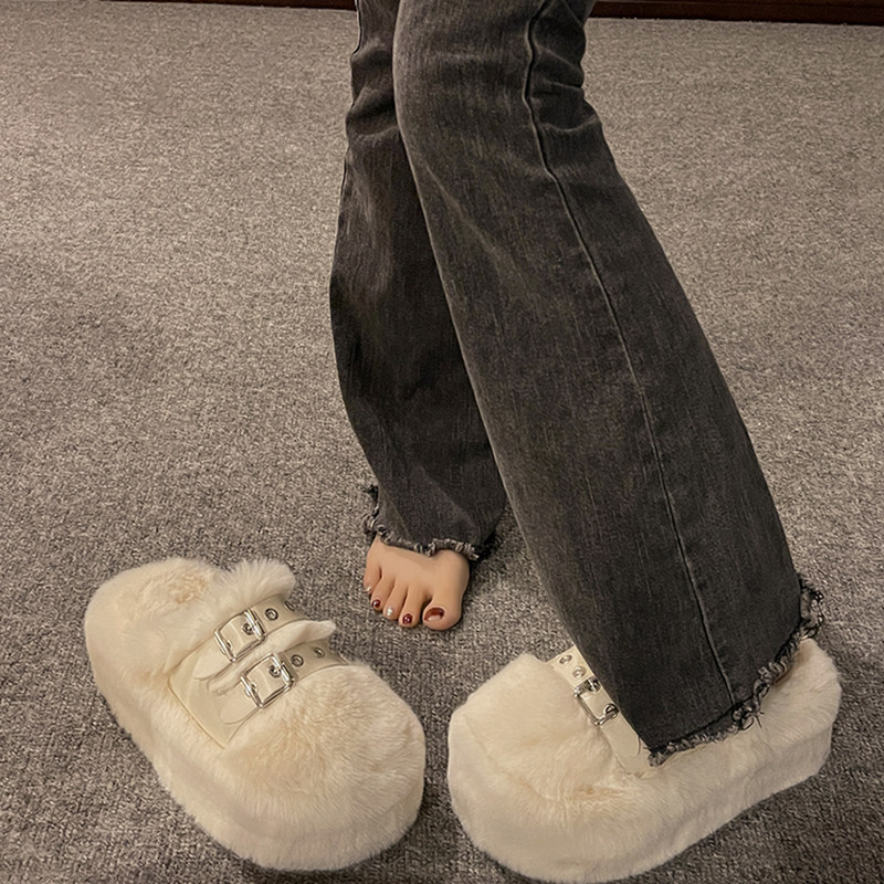 Высокие тапочки на платформе, демисезонная флисовая удерживающая тепло обувь, популярно в интернете, 2024 года