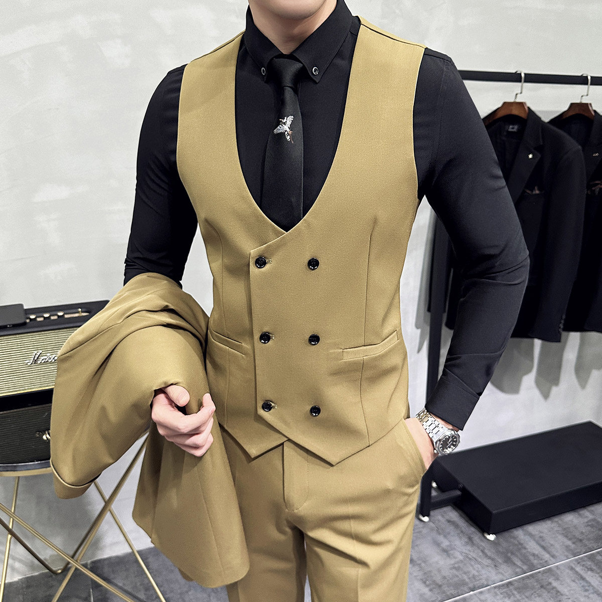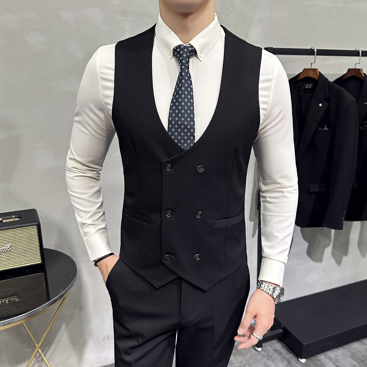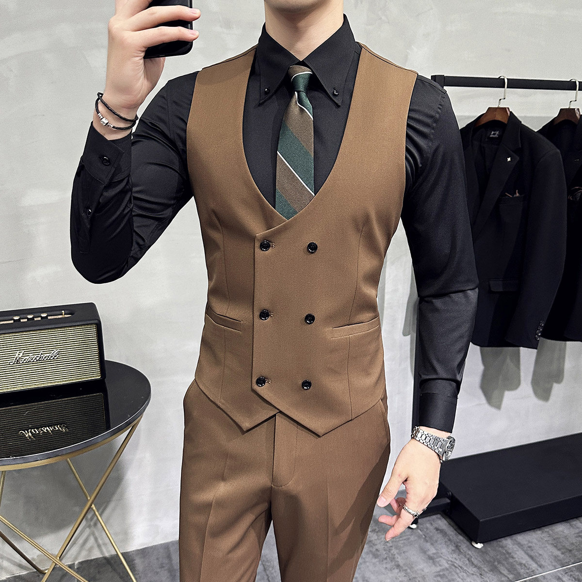 Костюм, жилет, цветной комплект для работы, облегающий крой