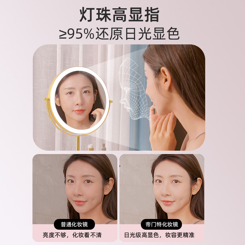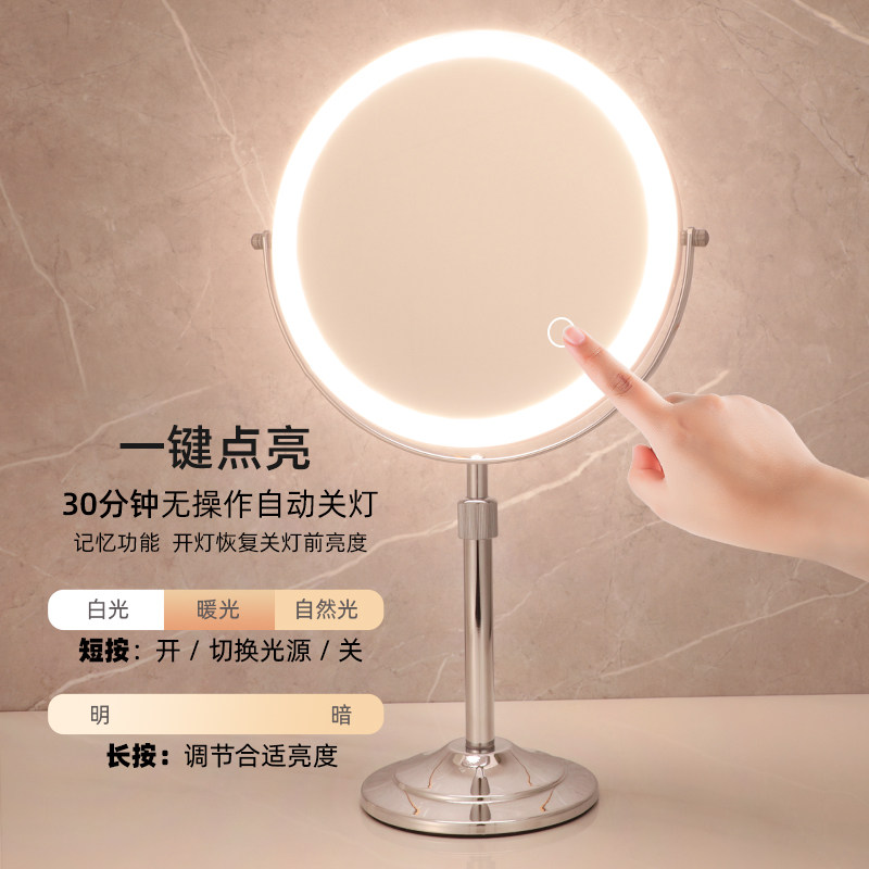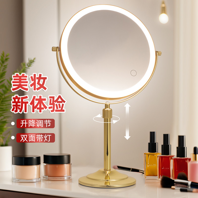 Регулируемый двусторонний настольный туалетный столик, зеркало с подсветкой