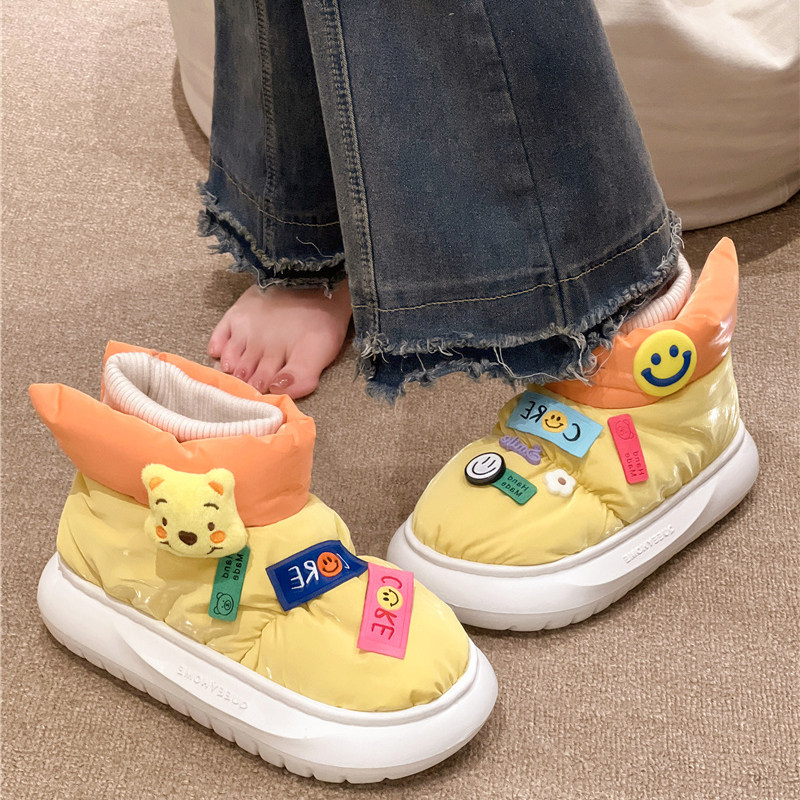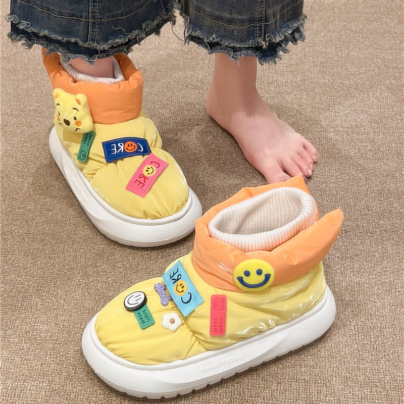 Тапочки на платформе, зимняя мультяшная милая обувь с пухом, нескользящие флисовые удерживающие тепло сапоги