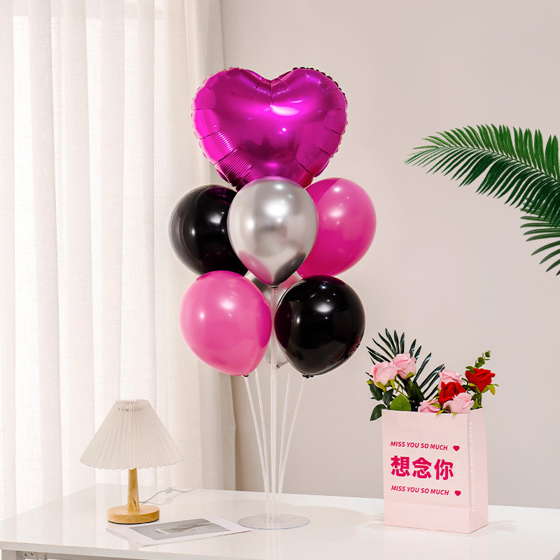 Женский день Черный Розовый Роза Красный Алюминиевая пленка Форма любви День рождения Свадьба Воздушный шар Стол Плавающее предложение Атмосфера Торговый центр Украшение Композиция