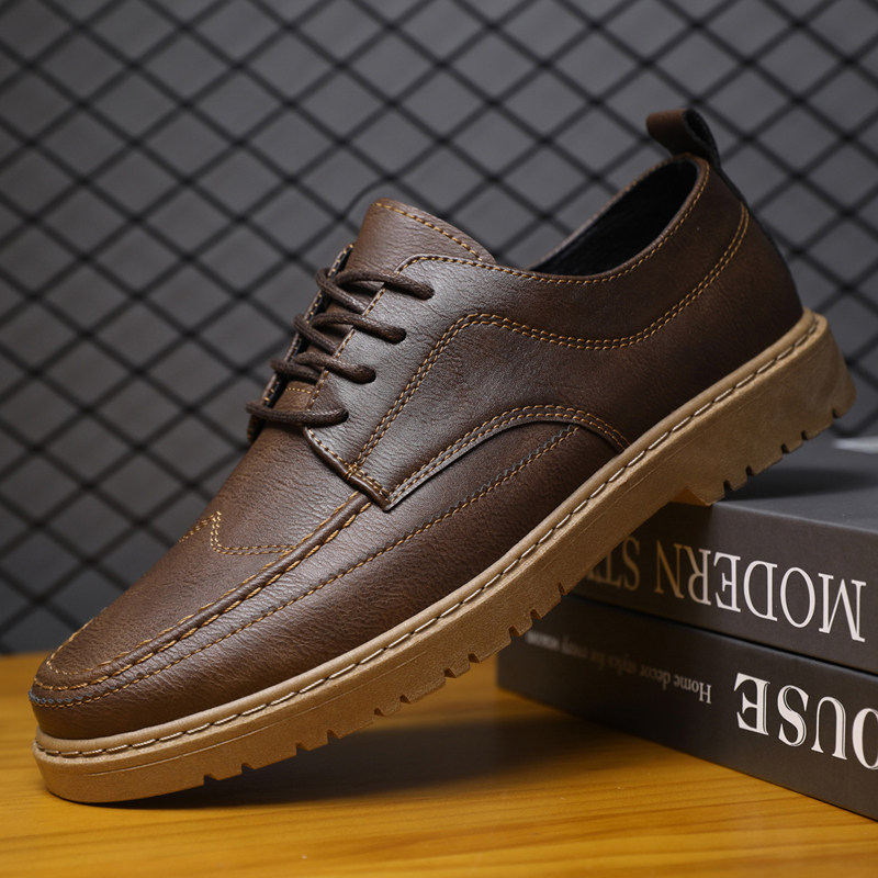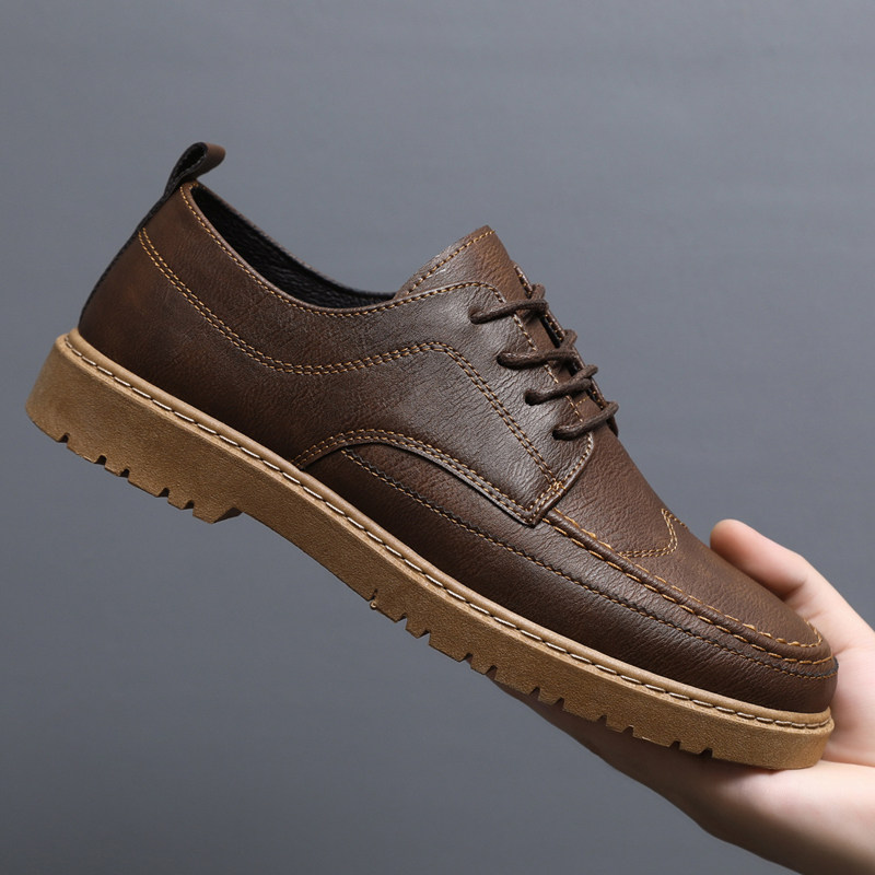Мужская спортивная обувь, летние износостойкие туфли для отдыха для кожаной обуви в английском стиле, мягкая подошва, в корейском стиле