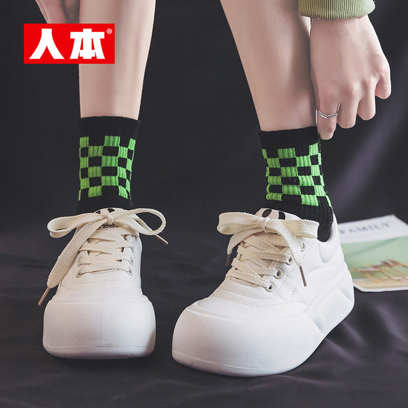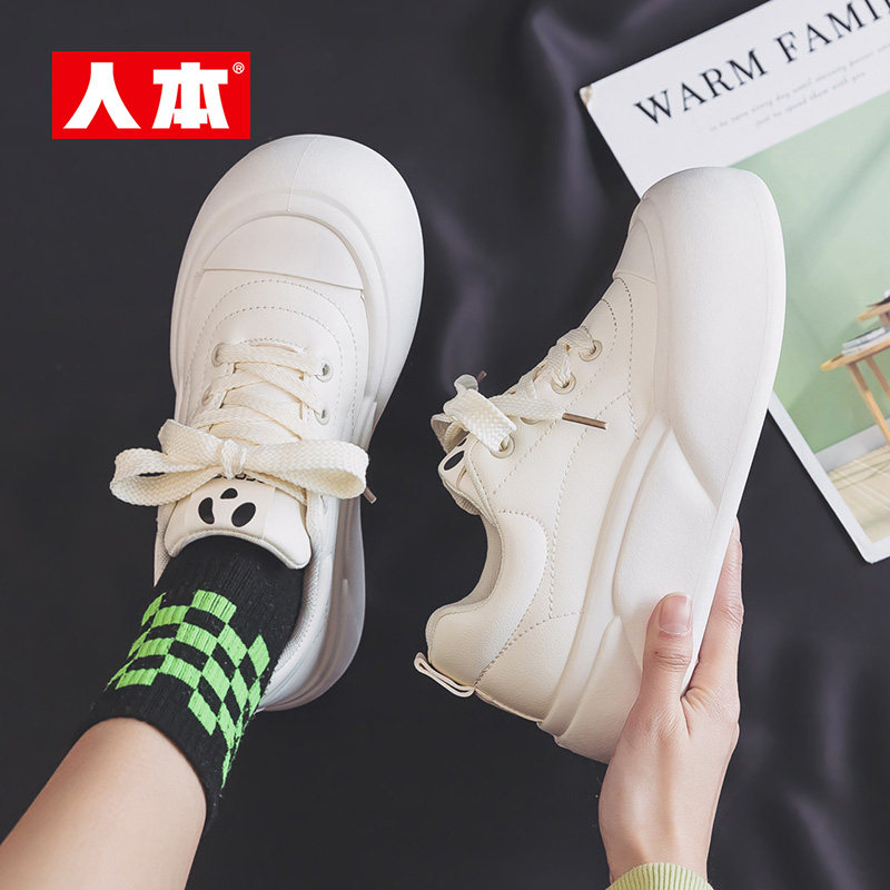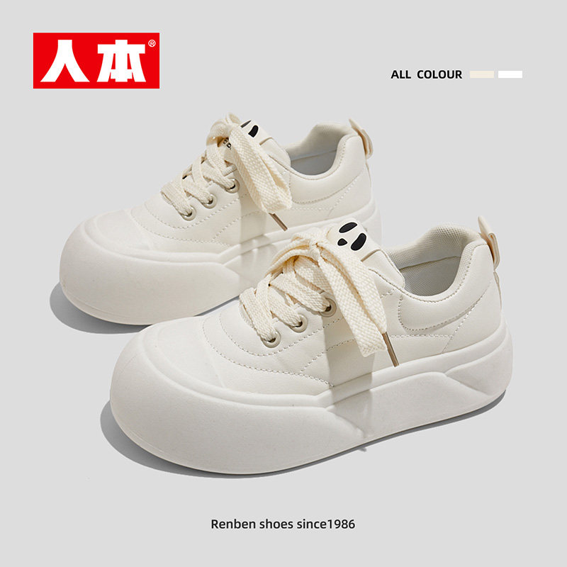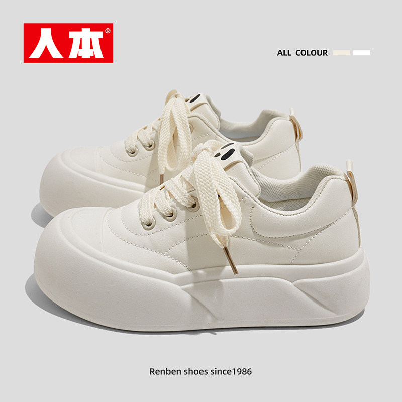 人本 Белая обувь на платформе, кроссовки, универсальные туфли