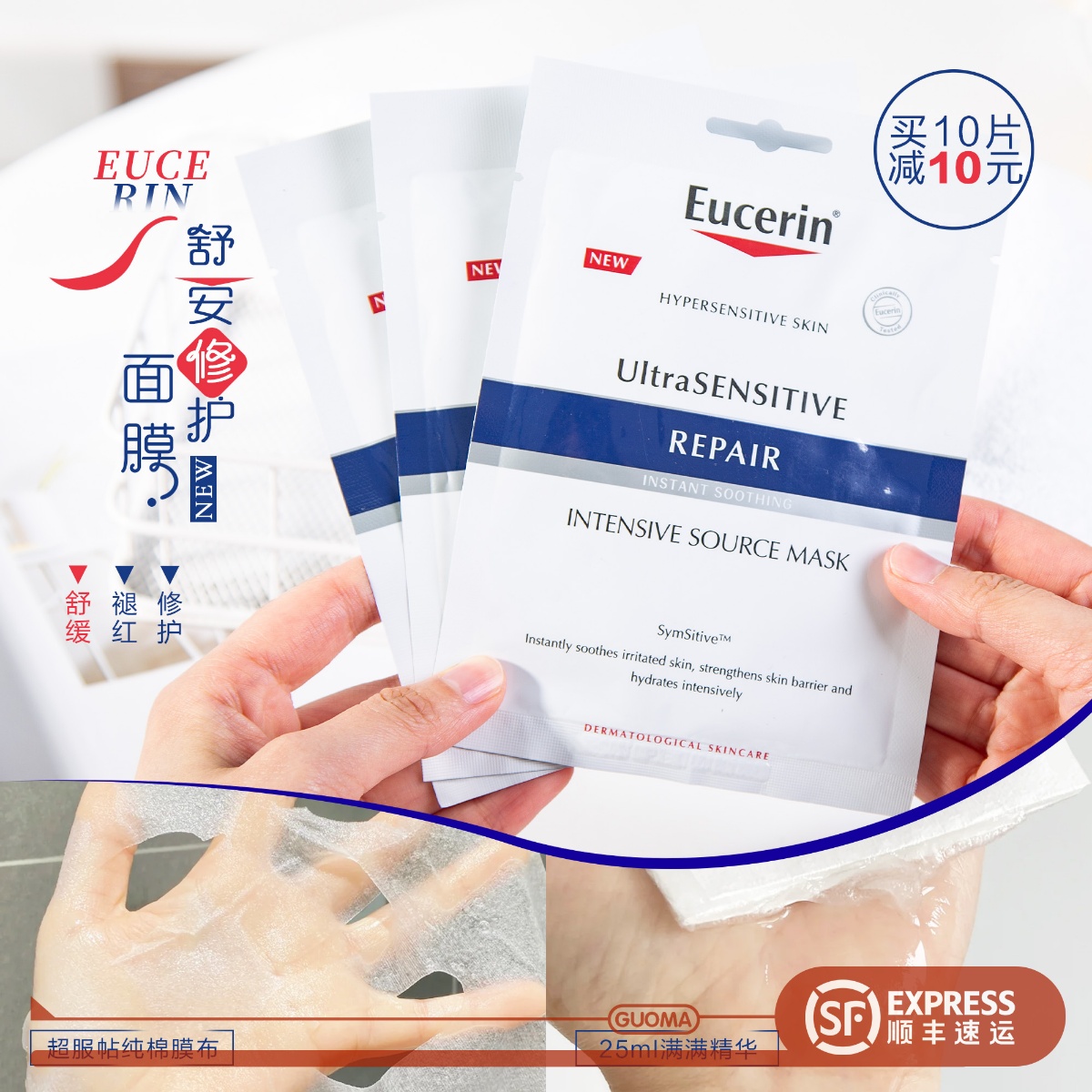 Восстанавливающая увлажняющая успокаивающая маска для лица для чувствительной кожи, 5 штук