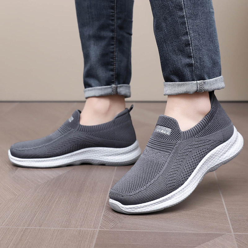 Нескользящие слипоны, дышащая спортивная обувь для отдыха для ходьбы, для среднего возраста, мягкая подошва