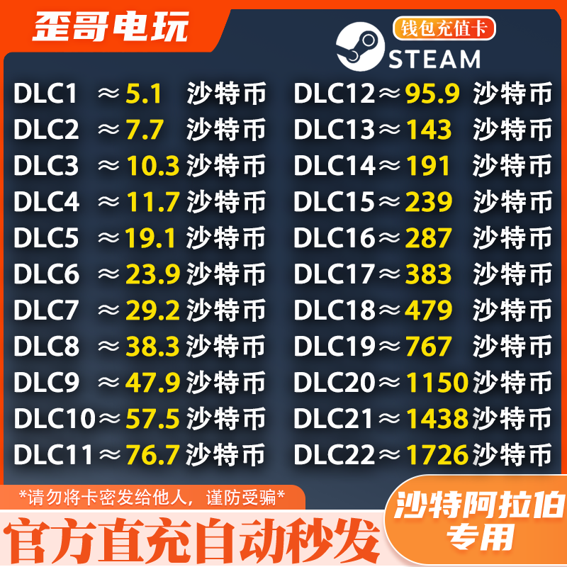 [Автоматические секунды] Steam Saudi Arabia SAR SAR Код перезарядка кода на Ближнем Востоке.