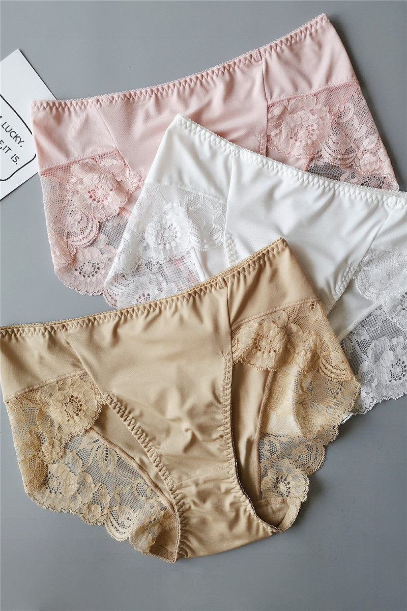 Розовое нижнее белье, шелковистые японские шелковые сексуальные дышащие штаны, средняя посадка, большой размер