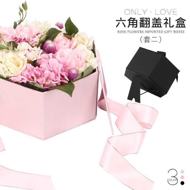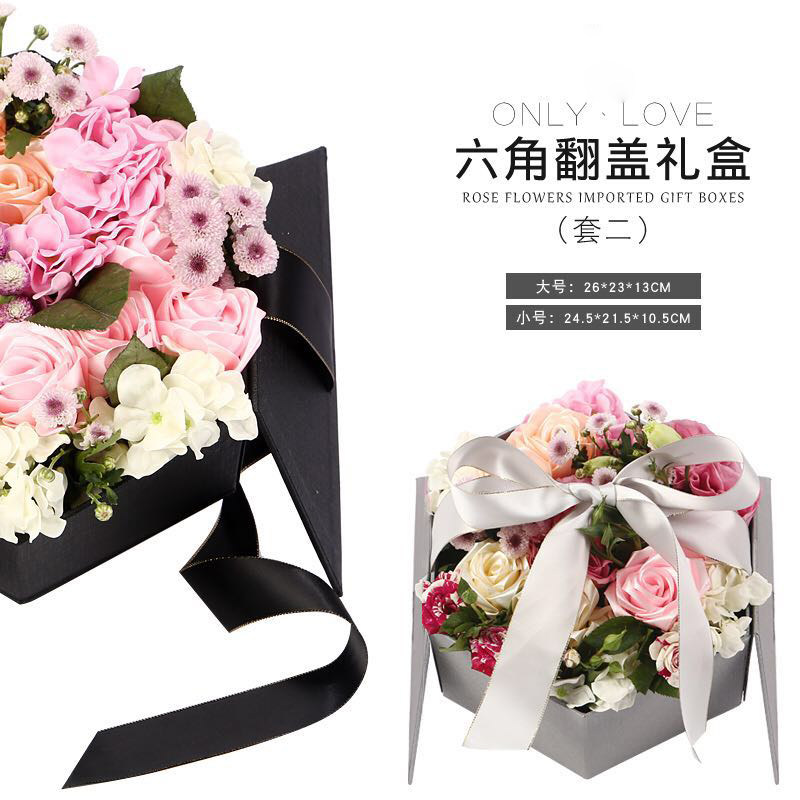 Rongyi Hexagon Flip Set Две подарочная коробка цветочная подарочная коробка вечная цветочная коробка цветочная коробка