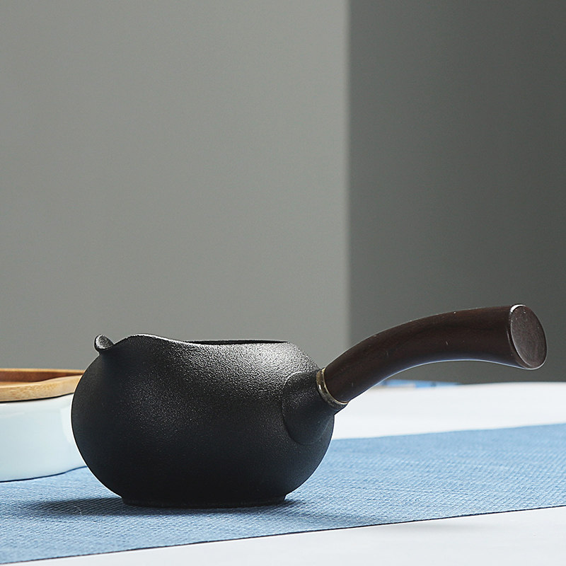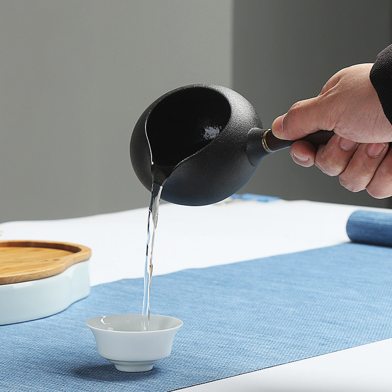 Ebony Mu Bing Cup Cup Кунг -фу чай море Джинге Город Грубая керамика чайная чашка общедоступная чашка японской деревянной ручки