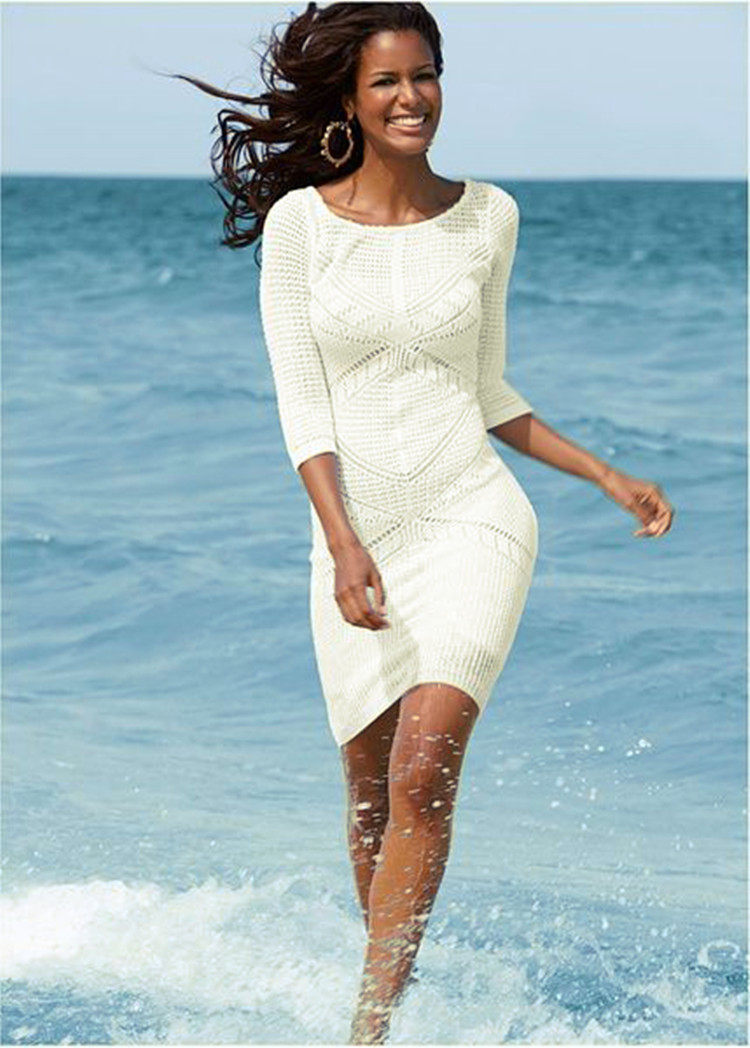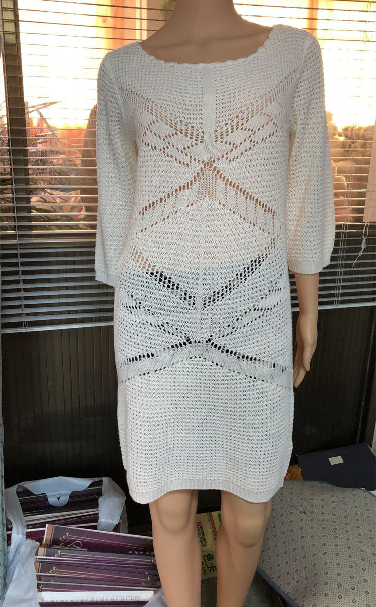 Сексуальное белое трикотажное пляжное платье, купальник, нагрудник, куртка, защита от солнца, свободный крой
