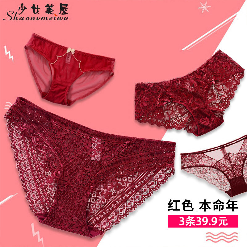 少女美屋 Прозрачные сексуальные красные трусы, нижнее белье для невесты, бордовый оберег на день рождения