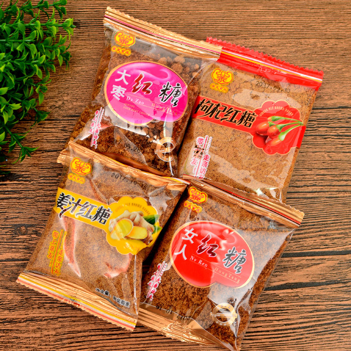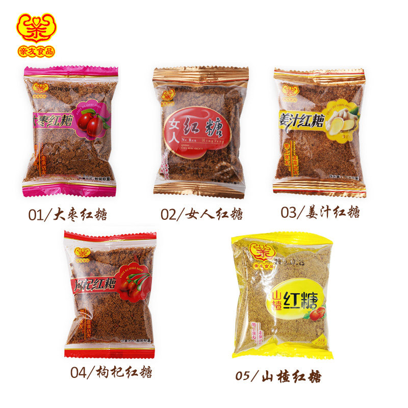 Родственники и друзья закуски, имбирь -коричневый сахар Jubube, Wolfberry, боярышник -женщины коричневый сахарный порошок 5 вкусов 500 г