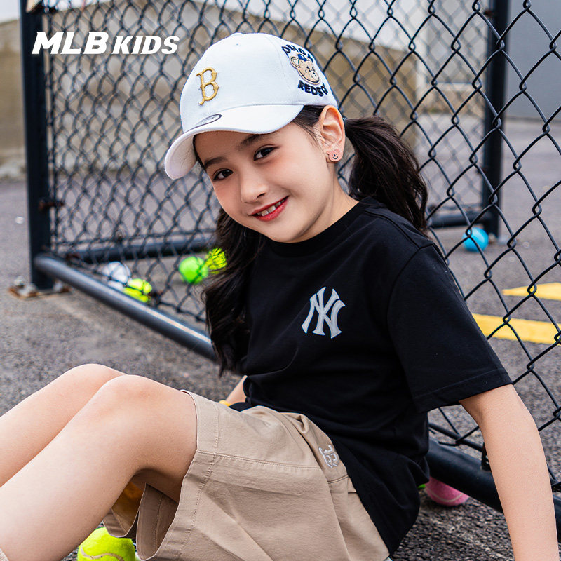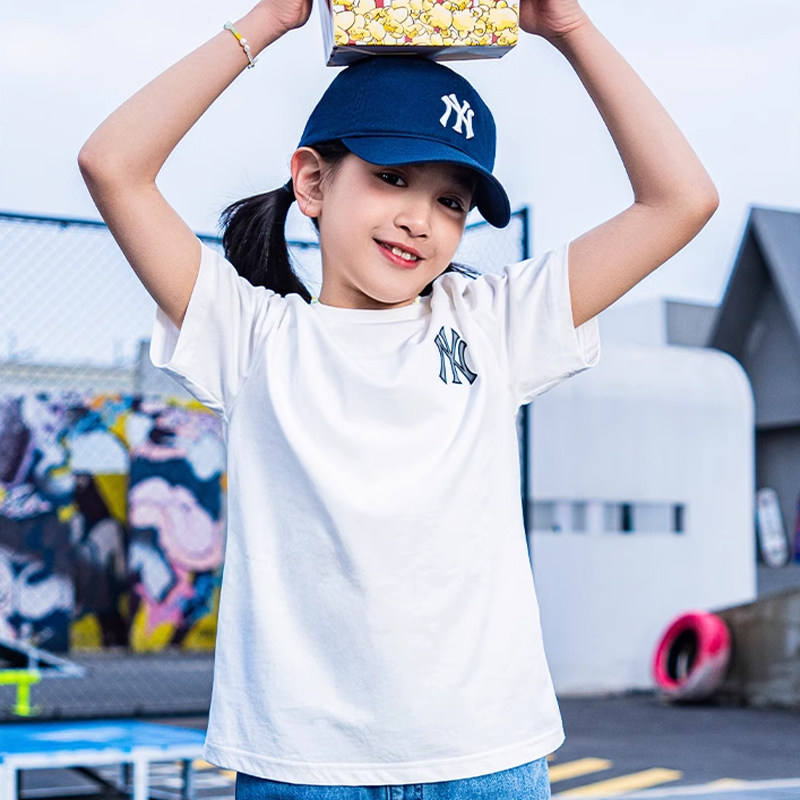 MLB Детская футболка, летний белый цветной спортивный костюм, круглый воротник, оверсайз