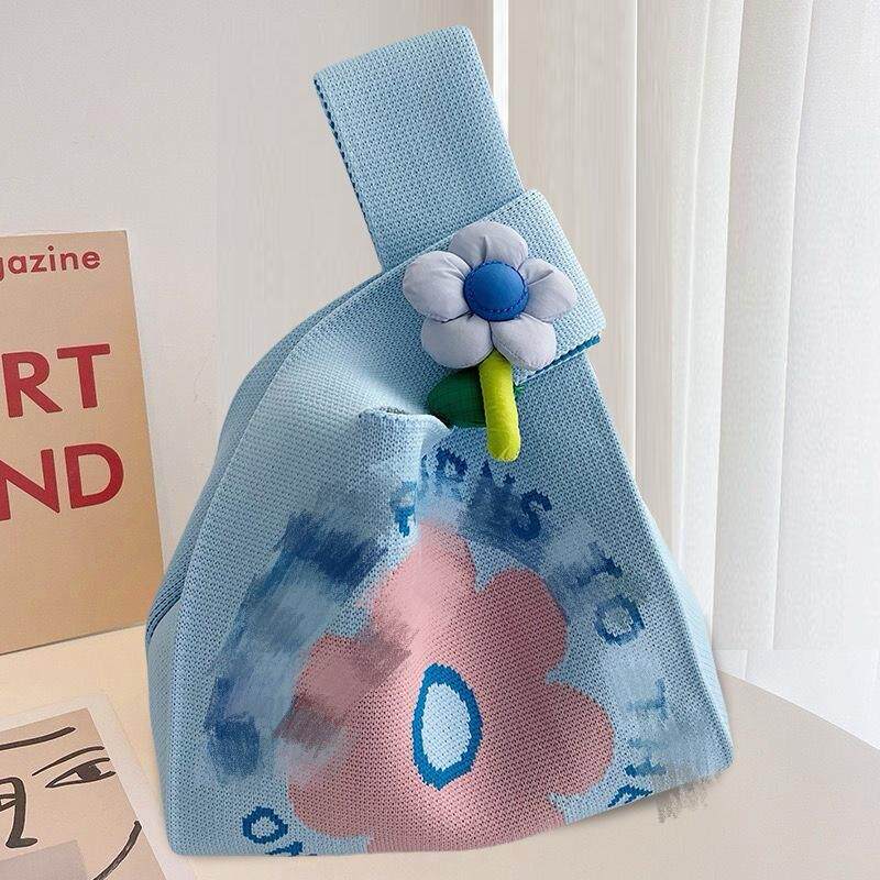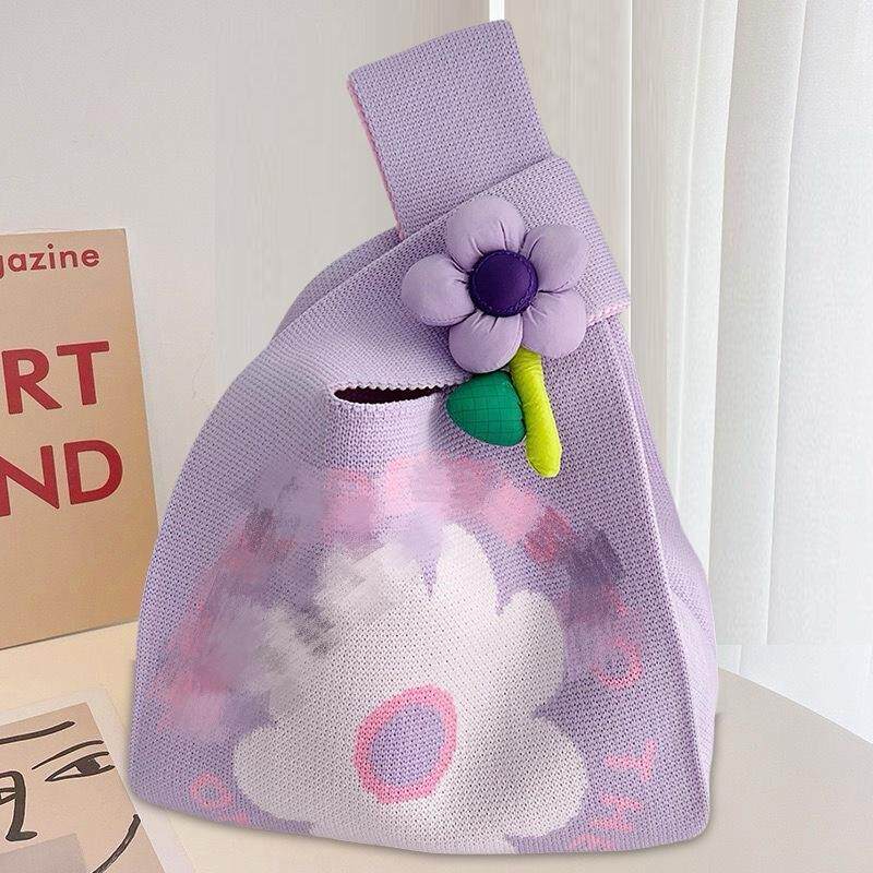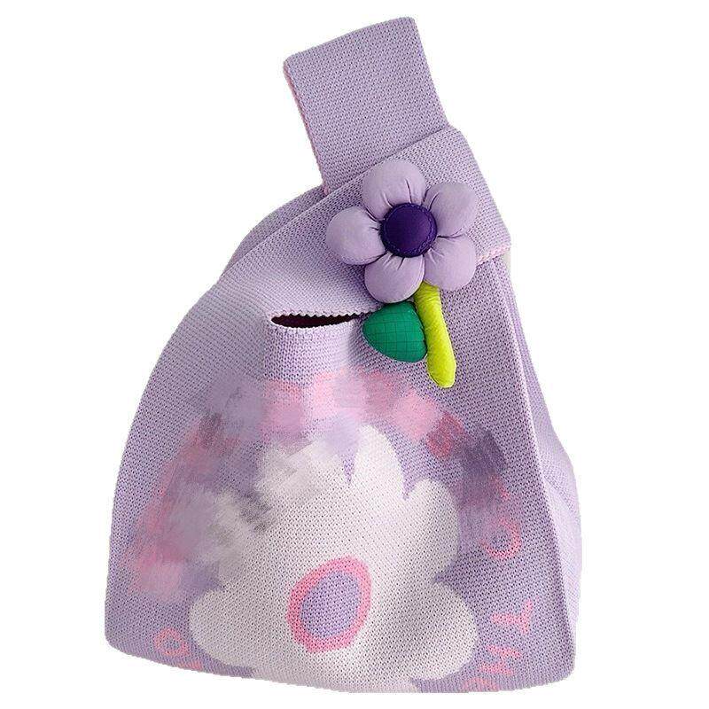 Трикотажная милая портативная брендовая льняная сумка, вместительный и большой шоппер, в цветочек, в корейском стиле