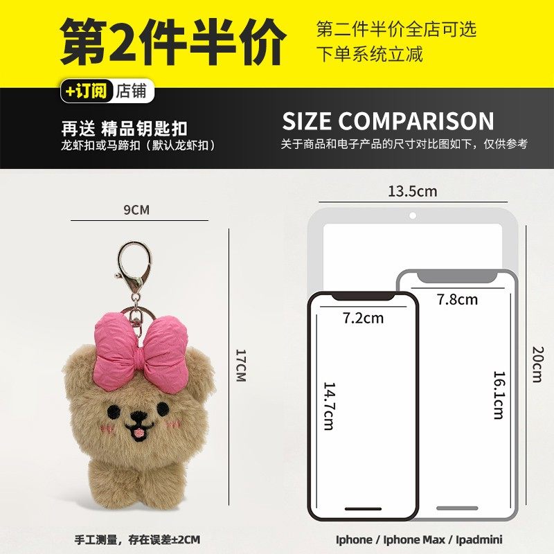 Полное описаниеРозовая милая подвеска с бантиком, мультяшный брелок, аксессуар на рюкзак, плюшевая, с медвежатами