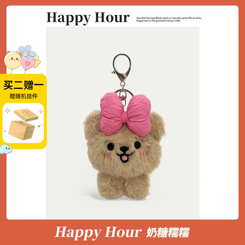 Розовая милая подвеска с бантиком, мультяшный брелок, аксессуар на рюкзак, плюшевая, с медвежатами
