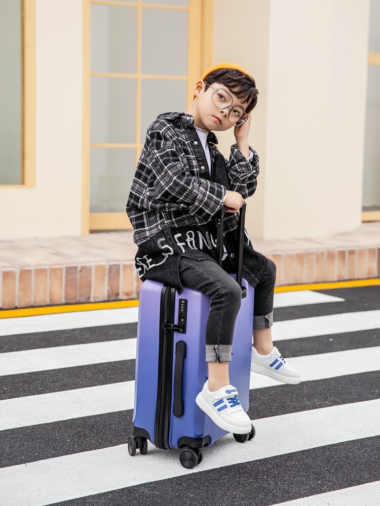 Чемодан для мальчиков, универсальная коробка с сидением на колесиках для путешествий, 18 дюймов