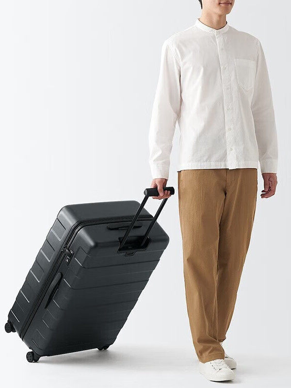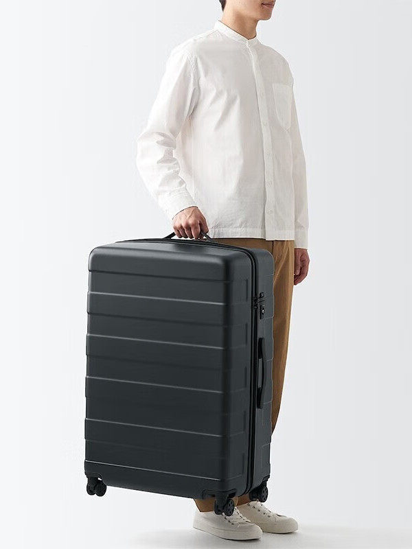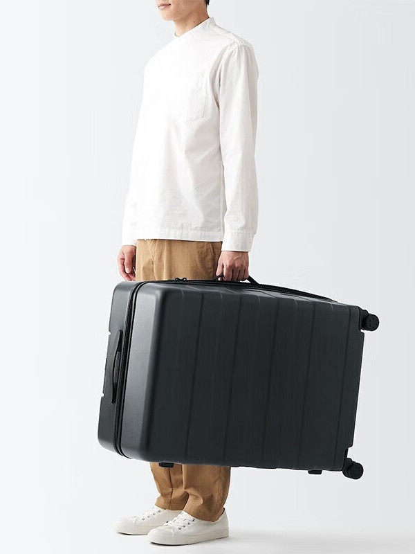MUJI может свободно регулировать высоту чемодана-тележки с твердым корпусом (105 л) около 28 дюймов.