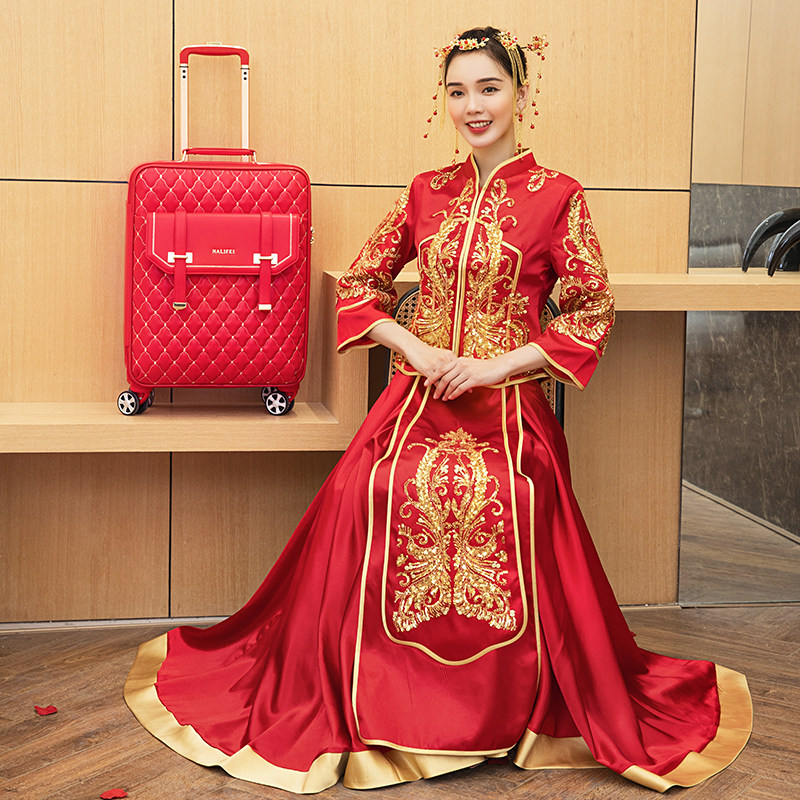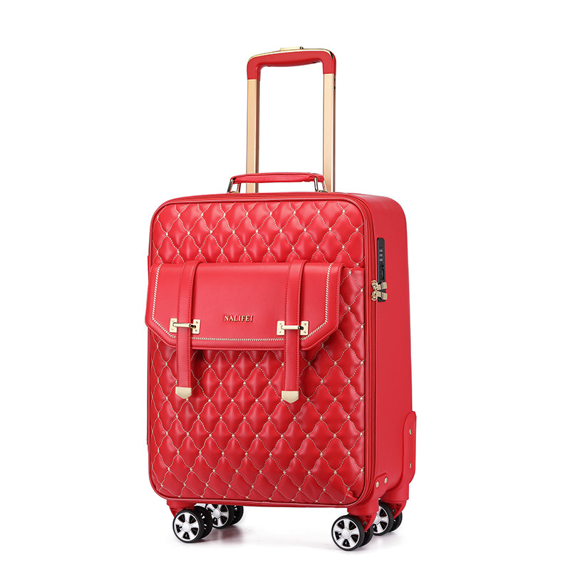 Чемодан, изысканные красные свадебные туфли для невесты