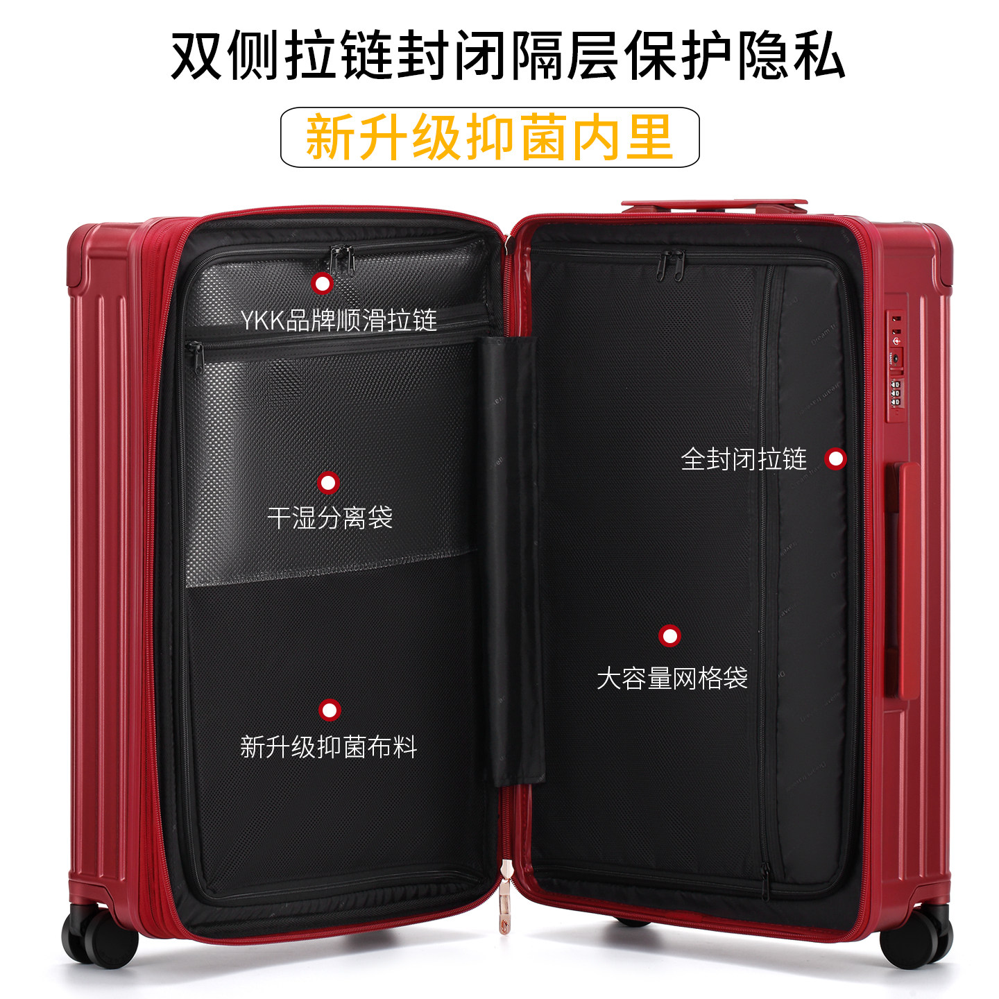 - Размер : 20 дюймов расширенная емкость обычные 22 дюйма двухслойная взрывозащищенная молния закрытое отделение на молнии , 24 дюйма расширенная емкость обычные 26 дюймов двухслойная взрывозащищенная молния закрытое отделение на молнии , 26 дюймов расширенная емкость обычные 28 дюймов двухслойная взрывозащищенная молния закрытое отделение на молнии