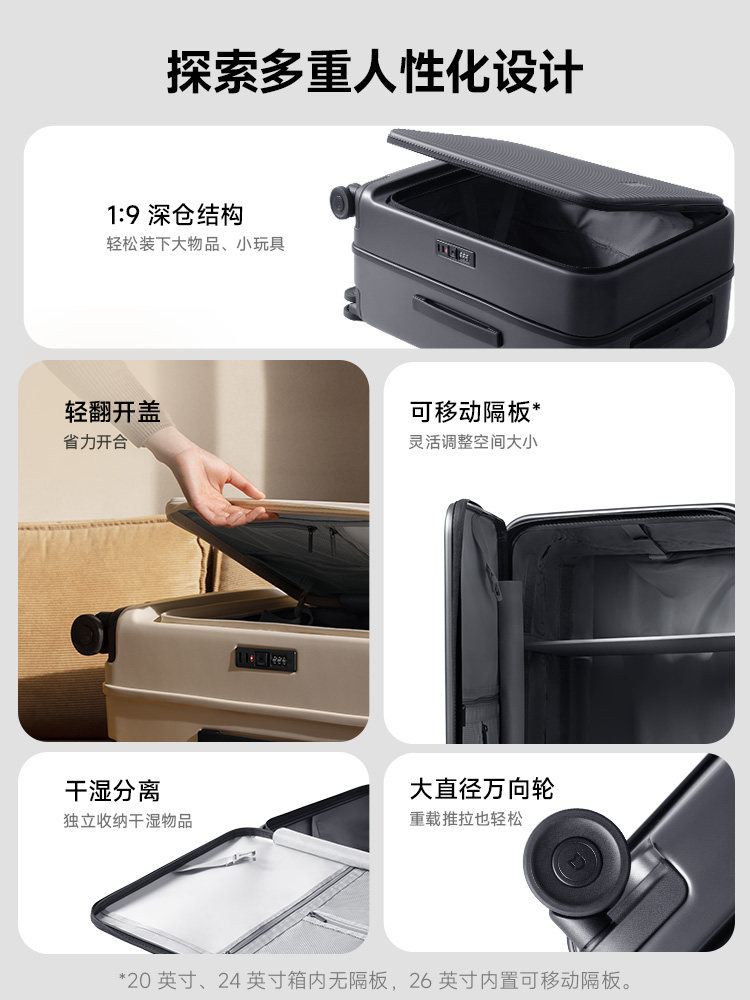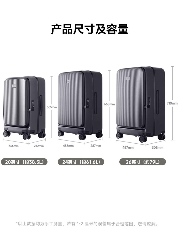 20-дюймовый подходит для коротких поездок в течение 1 недели боковой флип более экономный , 24 дюйма Подходит для 1-2 недель дальних путешествий 1 , 26-дюймовый подходит для перемещения на расстояние 1-2 недели больших возможностей и более способных к установке
