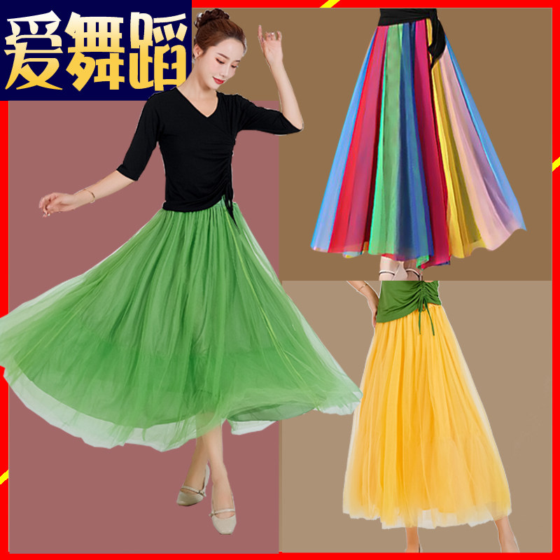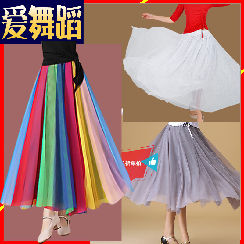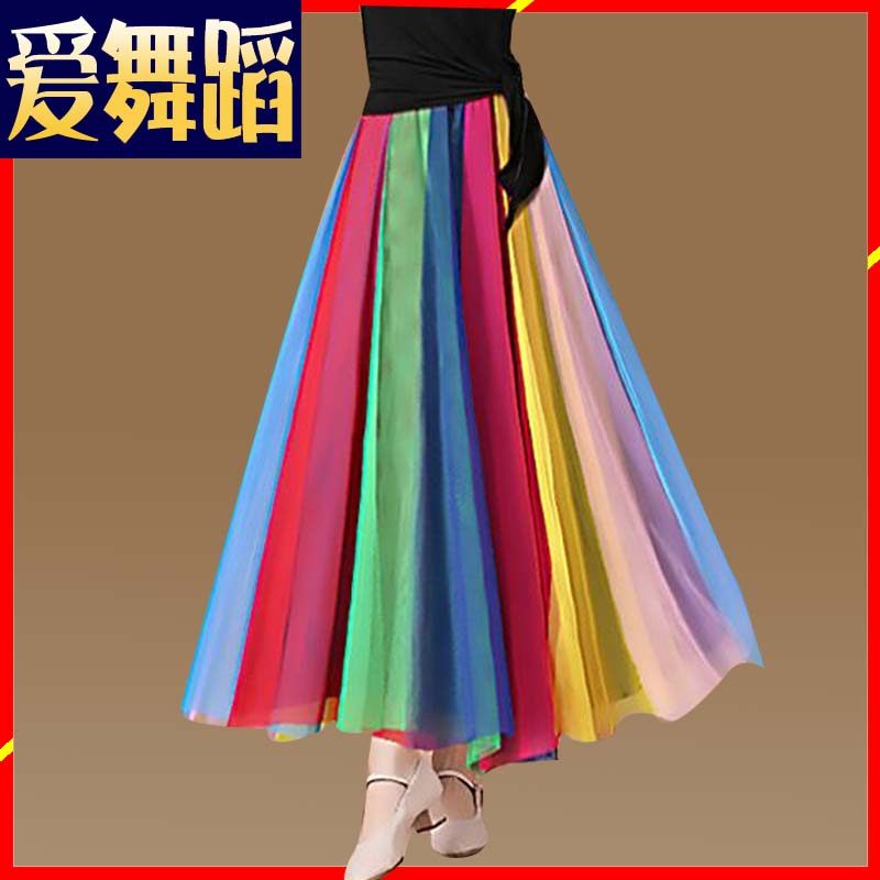 Квадратный танцевальный костюм танцы сетчатой сетка длинная юбка Хижи танца с большой юбкой радуги 80 см. КМ бальные танцевальные юбки женщины