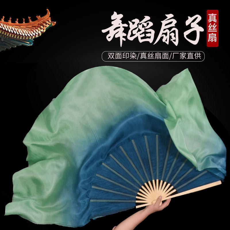 Настоящий вентилятор Silk Dance Dancing Fan Зеленый и зеленый двойной сдвоенный сдвоенный сдвоенный сдвоенный двухпонентный двухсторонний двухсторонний двухсторонний с двумя двумя двумя двумя двумя двумя двумя двумя двумя двумя двудиамированными плюс классическая танцор Янко исполнила вентилятор Silk