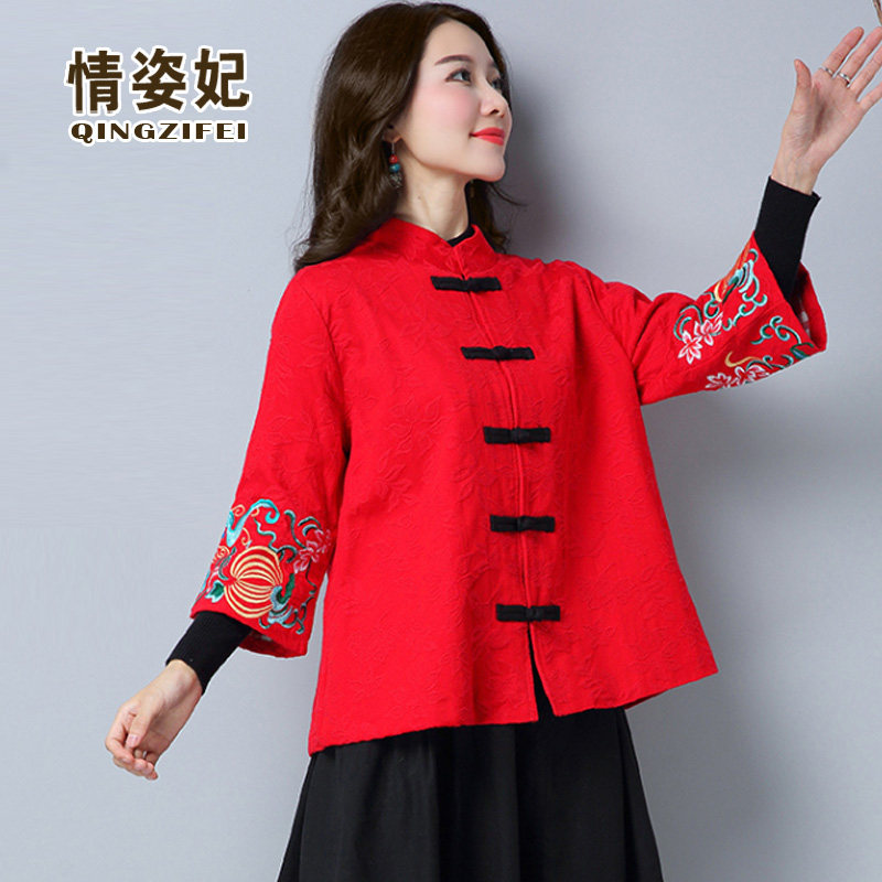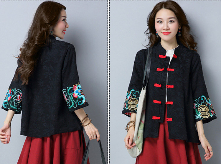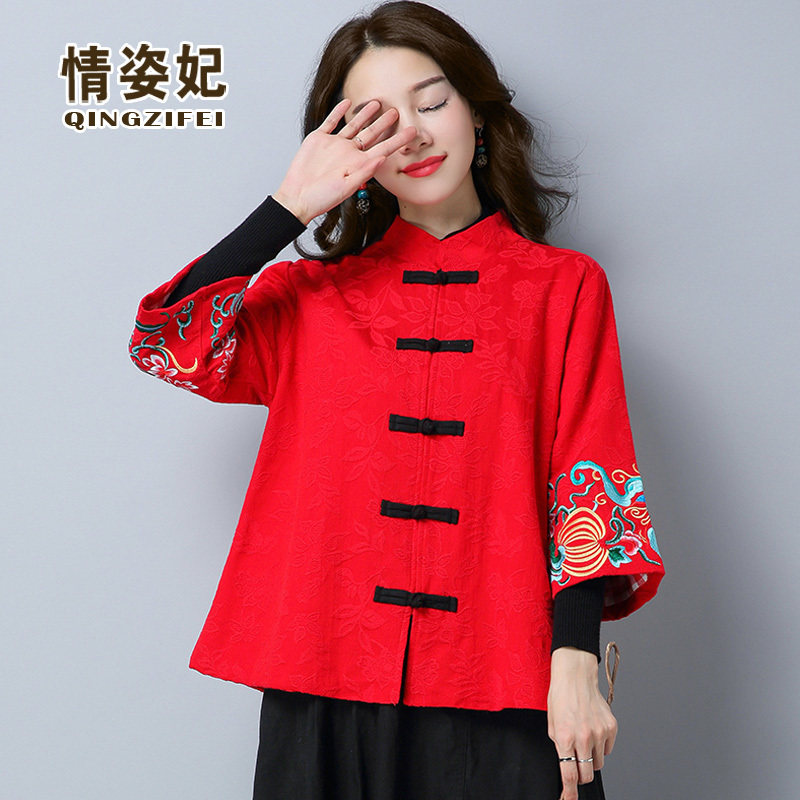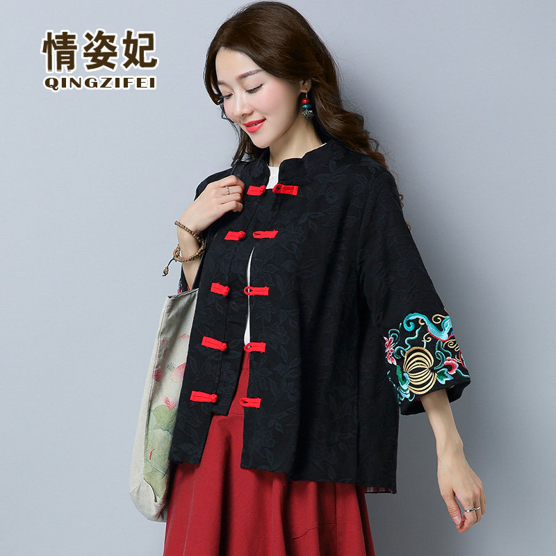 Ханьфу, ретро ципао, куртка, с вышивкой, из хлопка и льна, оверсайз
