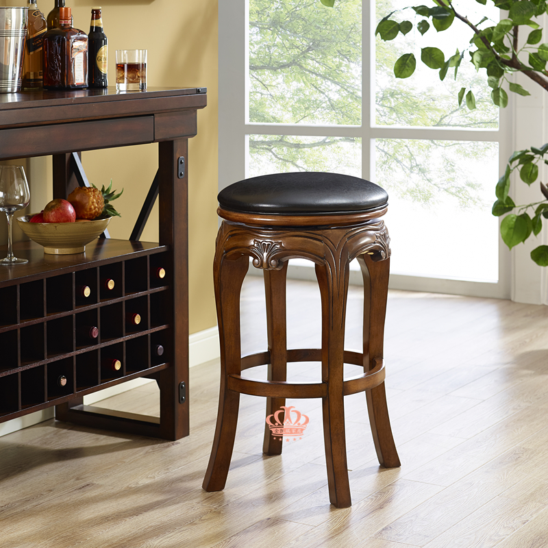 Spot деревянный лысый табурет Высокий стул Американский сплошной древесина европейская кожаная кожаная задница вращающаяся барная скамья