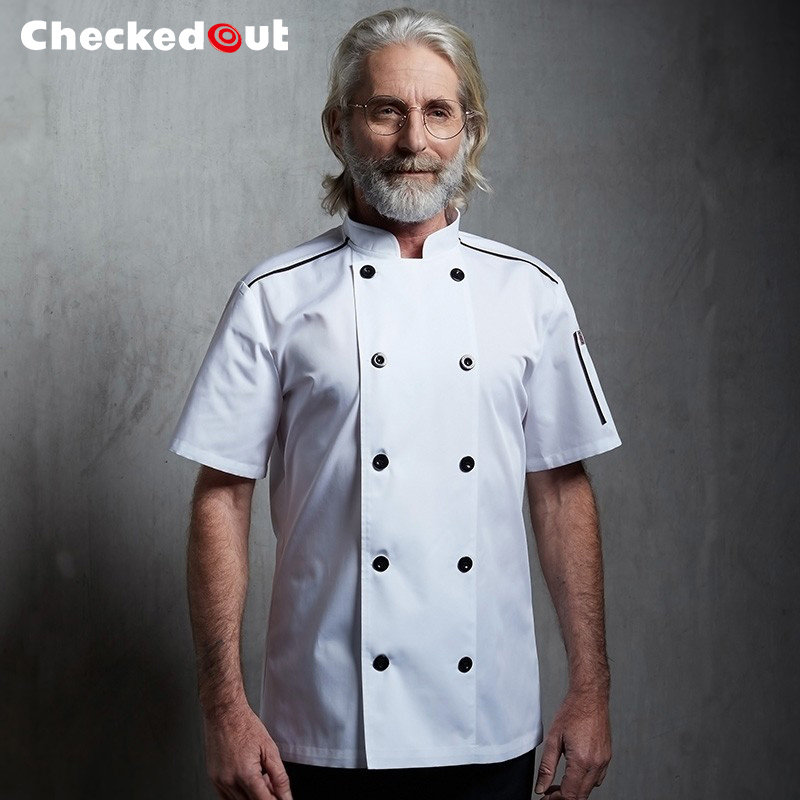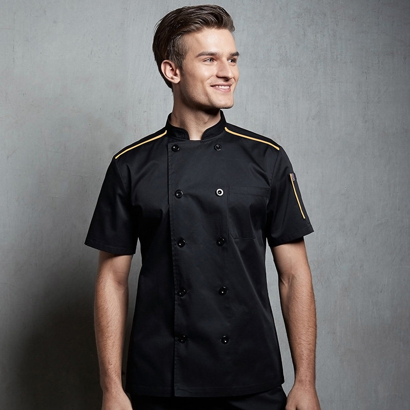 Шеф -повар костюмы с коротким рукавом осенью дышащий тонкий стиль ресторан ресторан на заказ логотип кухонная одежда по шеф -повару мужской белый топ