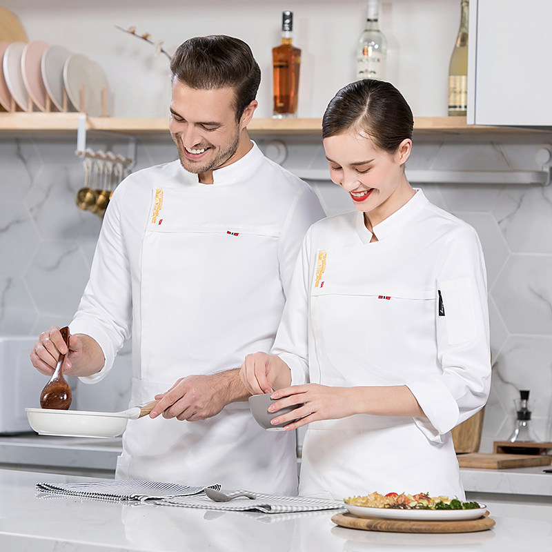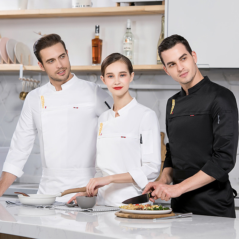 芭黛妮龙骨鱼厨师服酒店厨房餐厅烘焙厨衣秋冬长袖套装工装制服潮