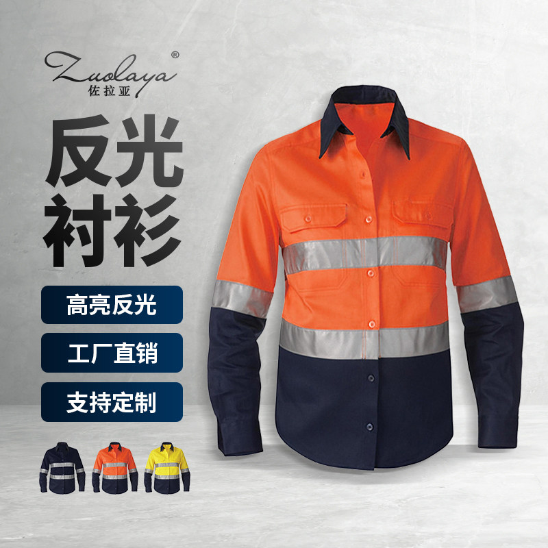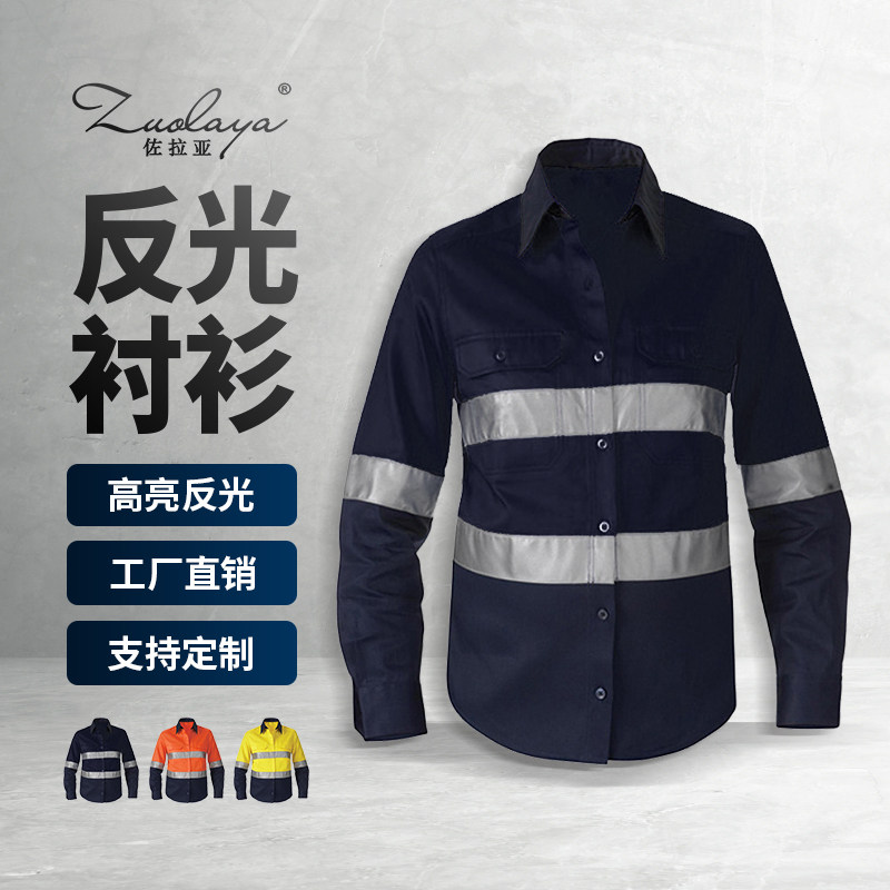 Хлопковая светоотражающая рубашка для работы, износостойкий безопасный лонгслив