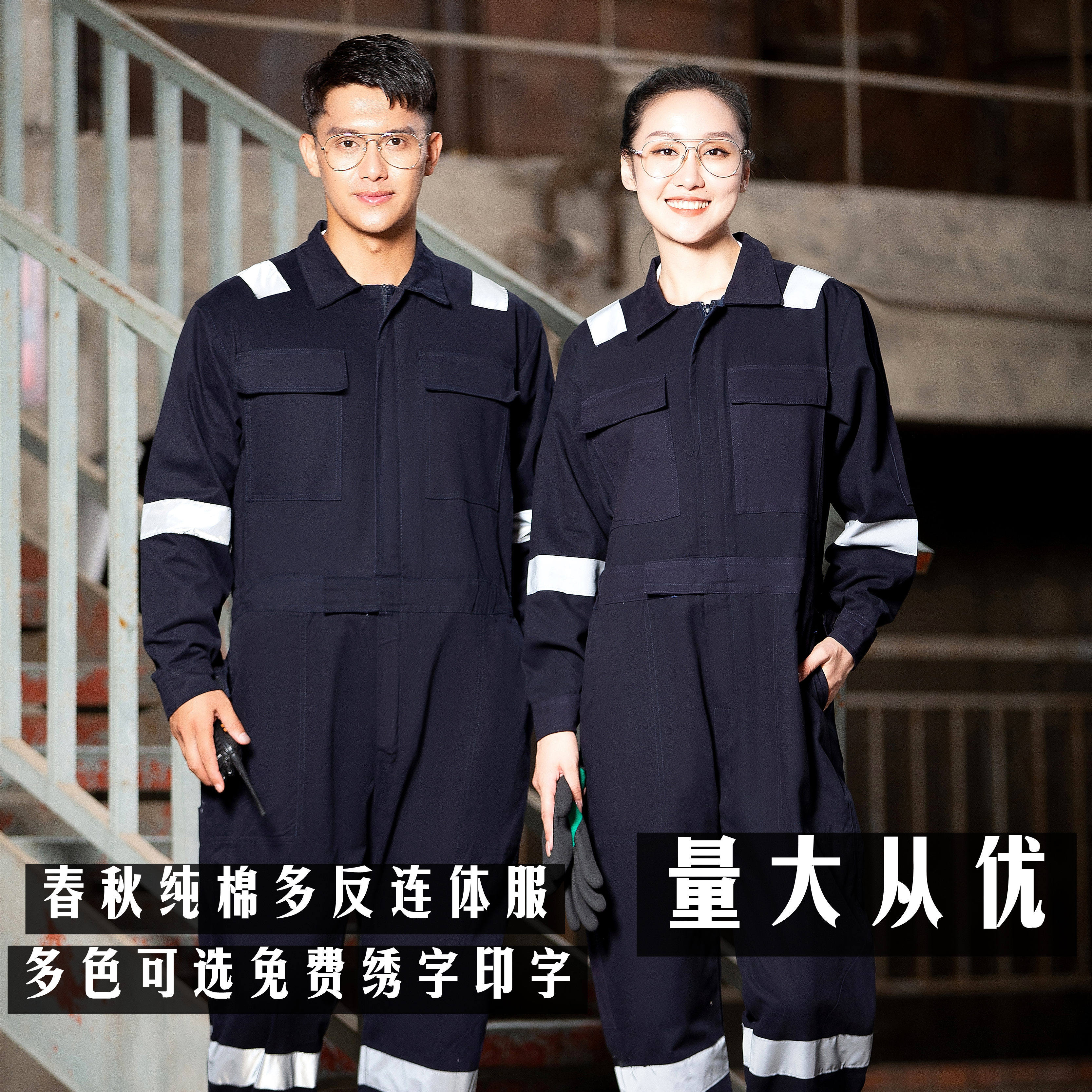 Весна и осенняя нефть все-коттона из цельной рабочей одежды мужская чистая хлопковая отражающая полоса с утолщенной анти-масштабной индивидуальной персоналом