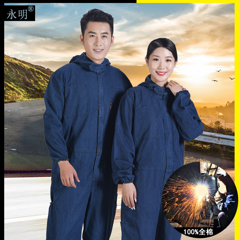 Хлопковый комбинезон для работы, дышащая износостойкая краска с капюшоном, защита от ожогов